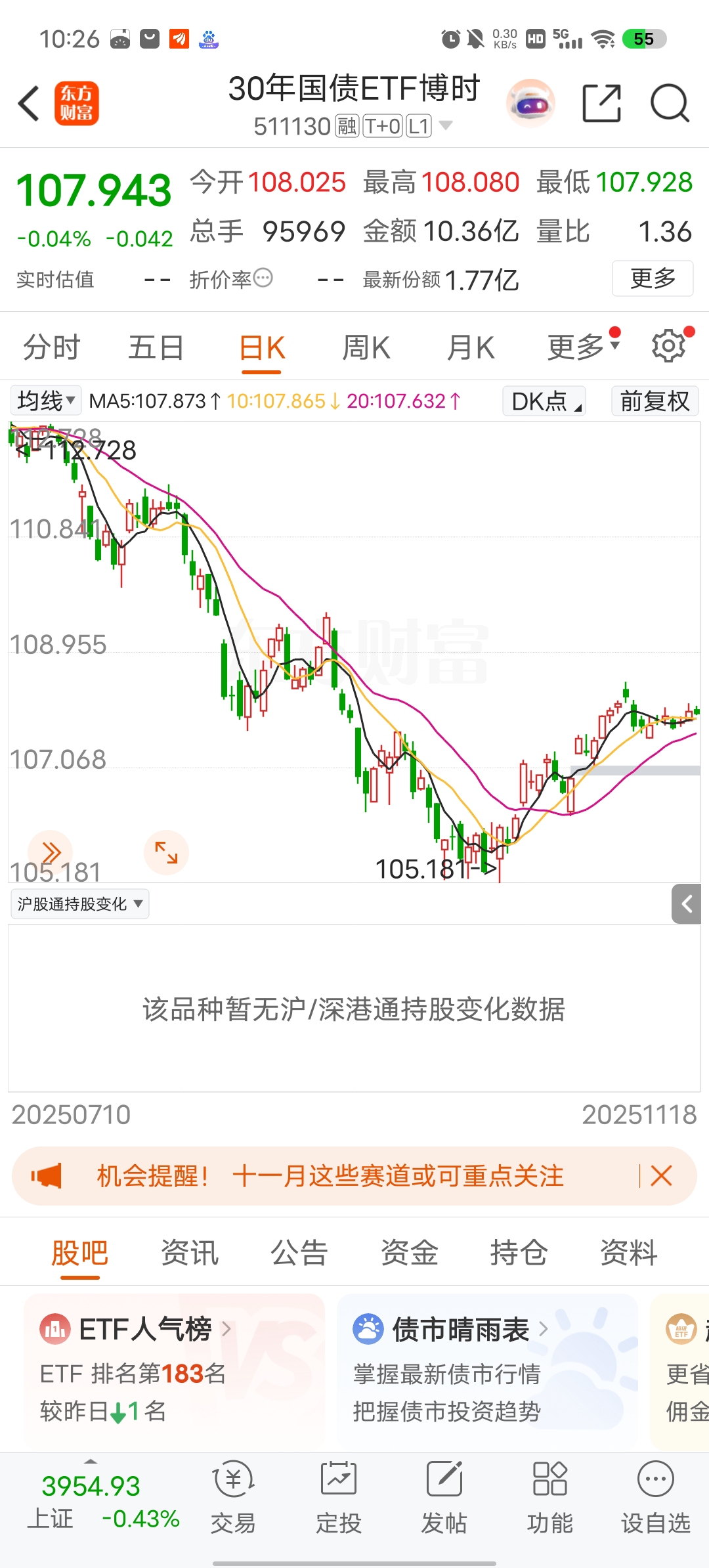 $30年国债ETF博时(SH511130)$ 别指望大涨,慢慢涨更健康