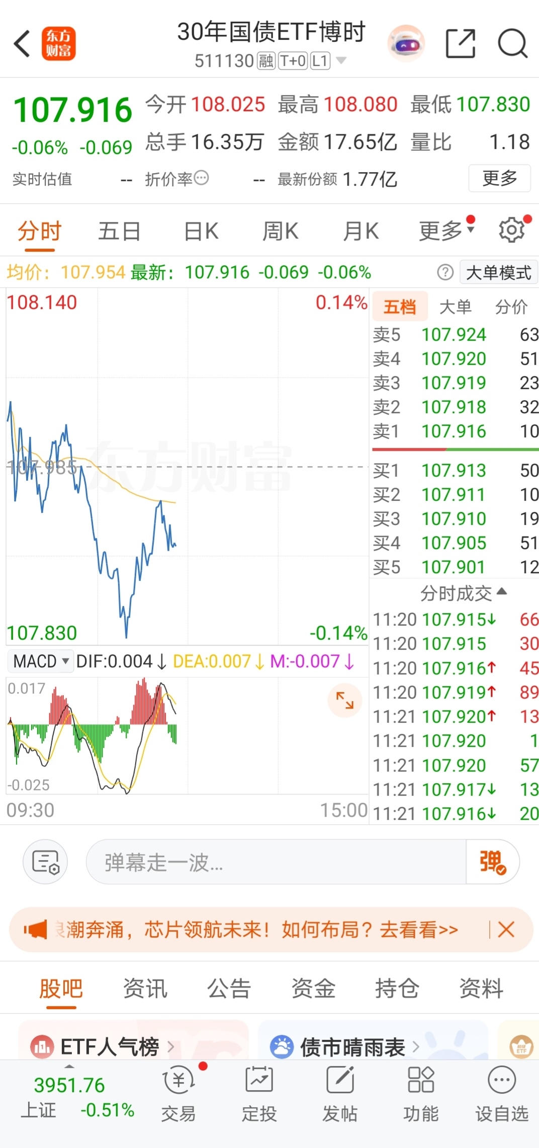 $30年国债ETF博时(SH511130)$ 长期国债的弹性还是有的