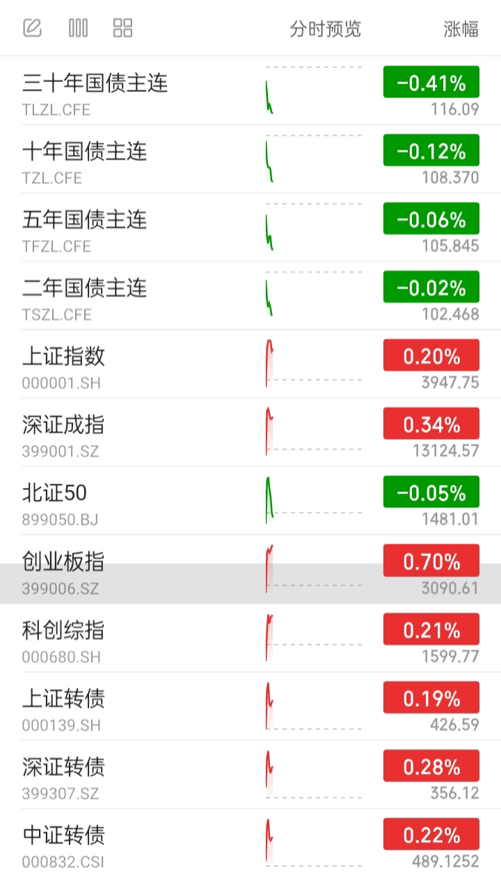 股市主要指数4涨1跌,目前看对债市有一定压制作用。今天偏股混合债基可能收蛋。