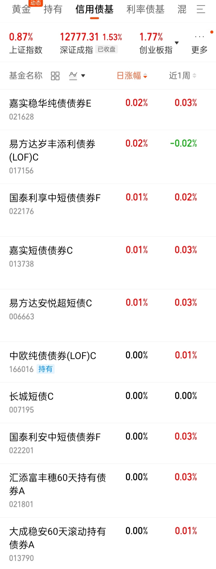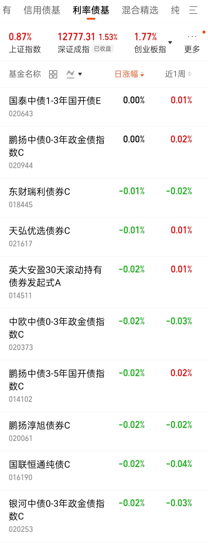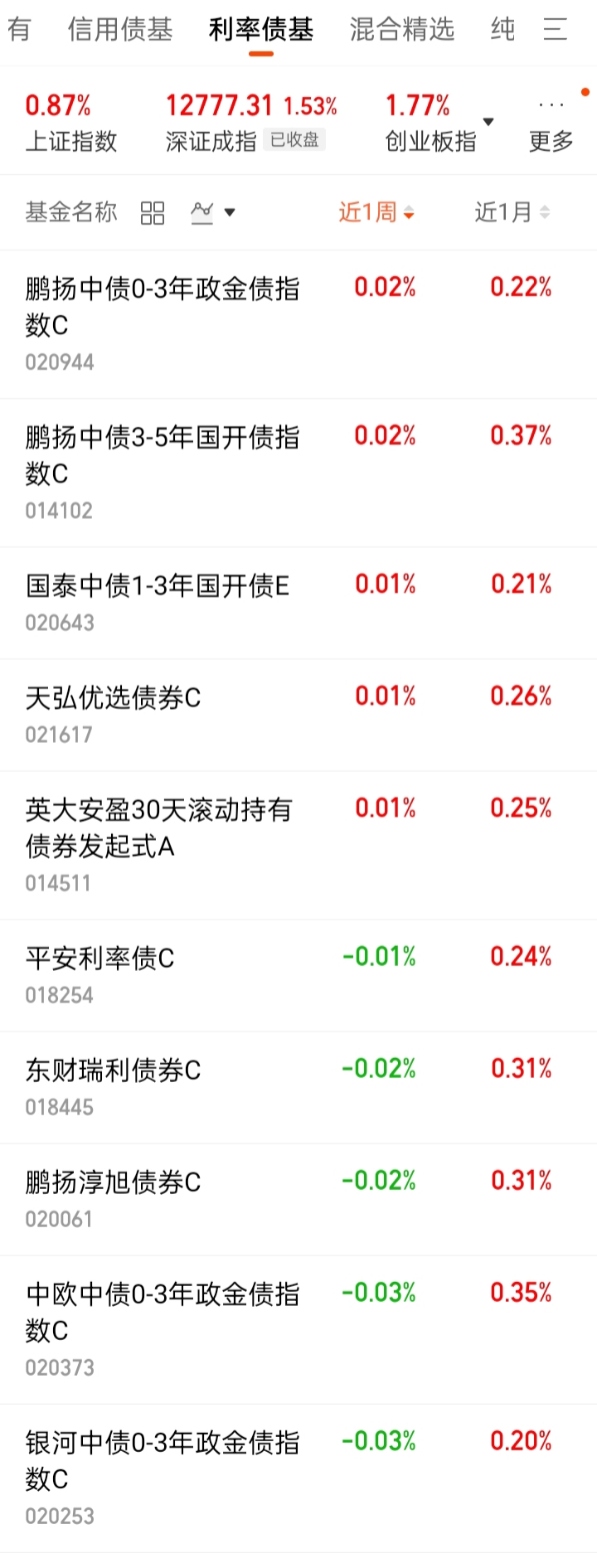 $华泰保兴安悦债券C(OTCFUND|020741)$。$东方添益债券(OTCFUND|400030)$。$华泰保兴安悦债券A(OTCFUND|007540)$ 。$鹏华丰禄债券(OTCFUND|003547)$。$方正富邦鸿远债券C(OTCFUND|015909)$。$永赢稳健增强债券C(OTCFUND|014089)$。$国泰惠丰纯债债券A(OTCFUND|007214)$。$博时恒乐债券C(OTCFUND|014847)$。$易方达增强回报债券A(OTCFUND|110017)$。$南方中债7-10年国开行债券指数E(OTCFUND|013594)$