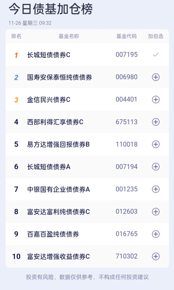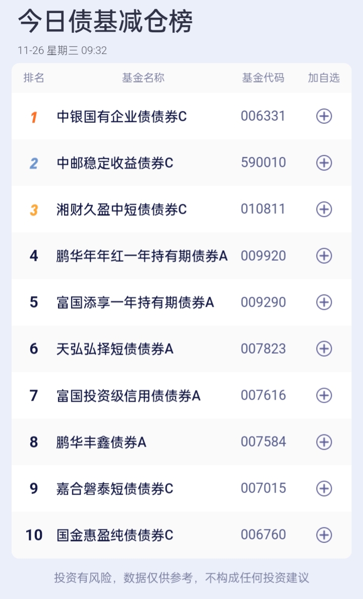 债基加减仓榜