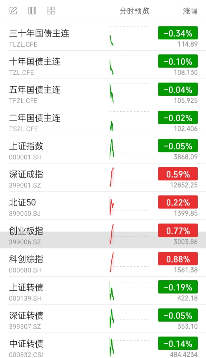 目前国债期货全部下跌,表现较差。