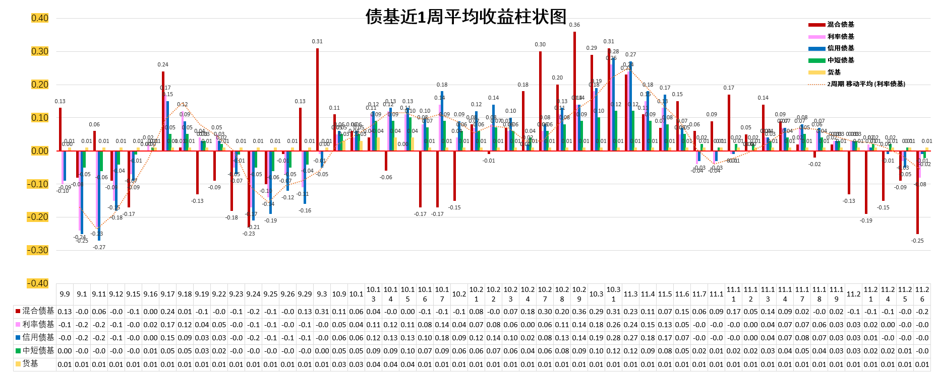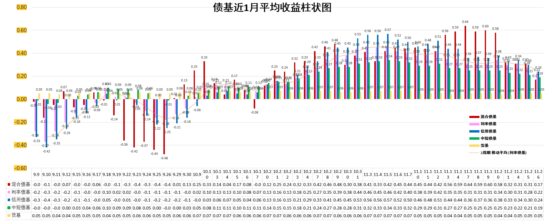 信用债基 :-0.10%。低于货基,低于中短债基。
