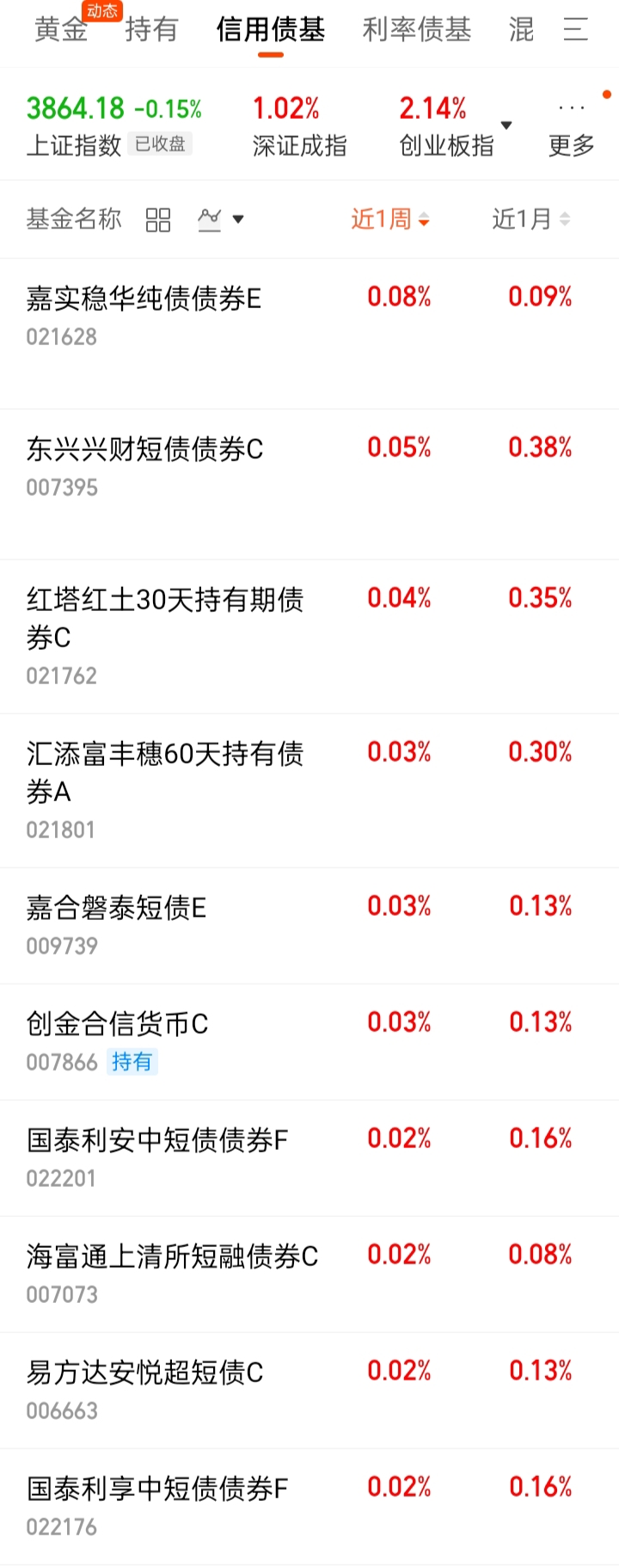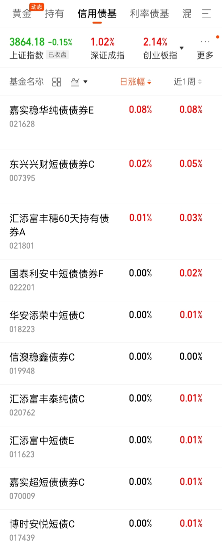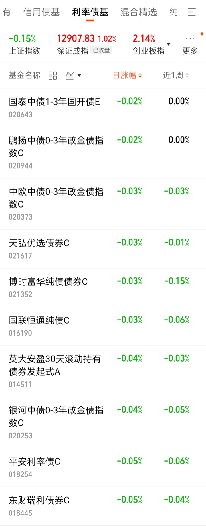 中短债基:-0.02%。低于货基。