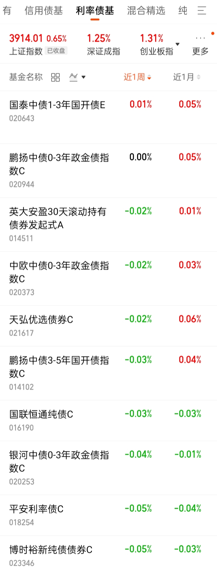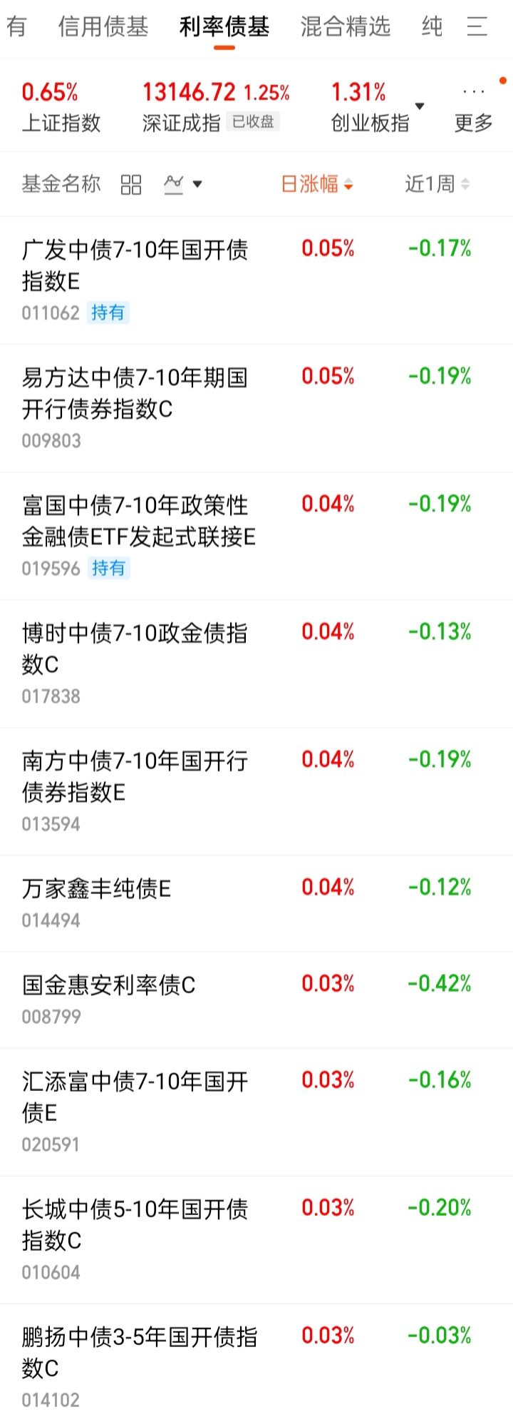 3、利率债基日涨幅排名