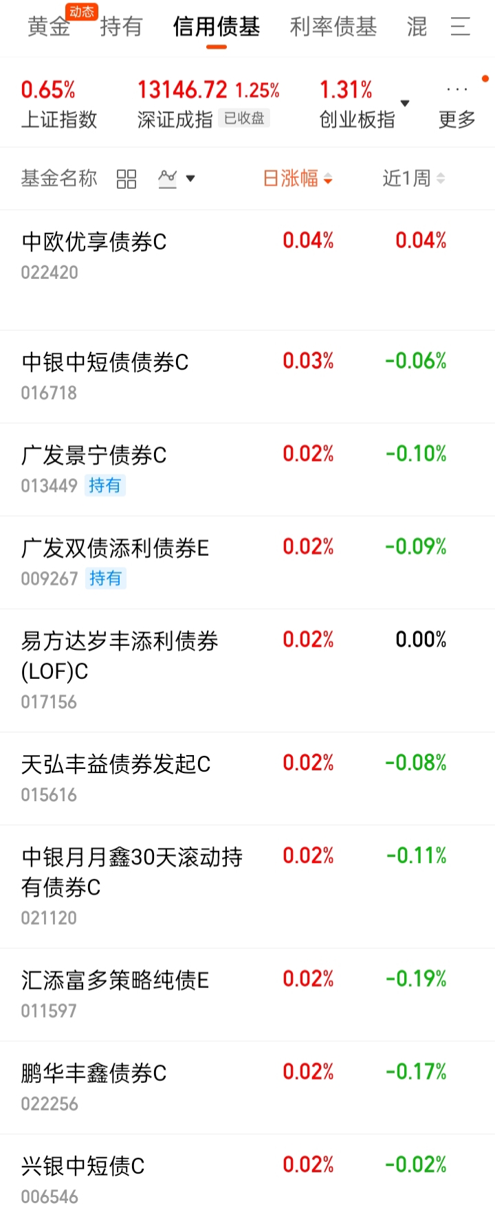 2、信用债基近1周涨幅排名