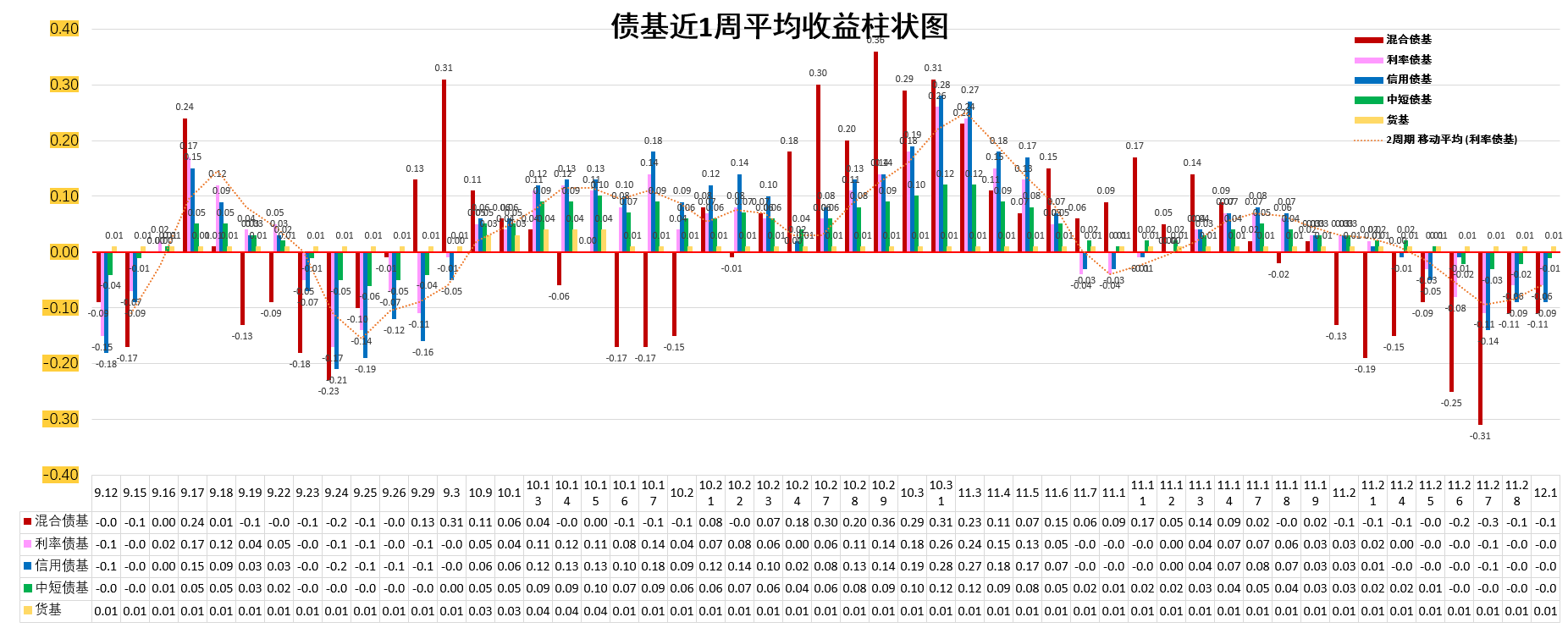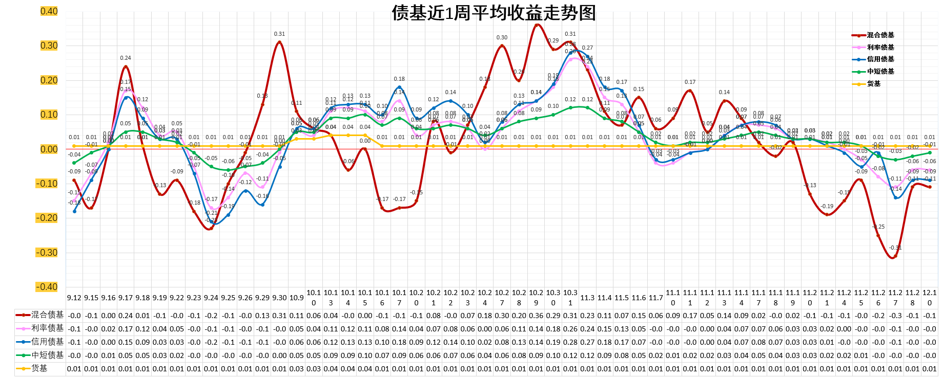 利率债基:-0.01%。低于货基。