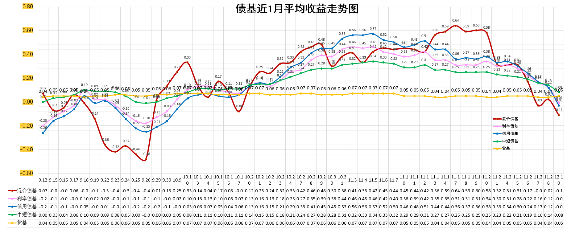 信用债基 :-0.09%。低于货基,低于中短债基。