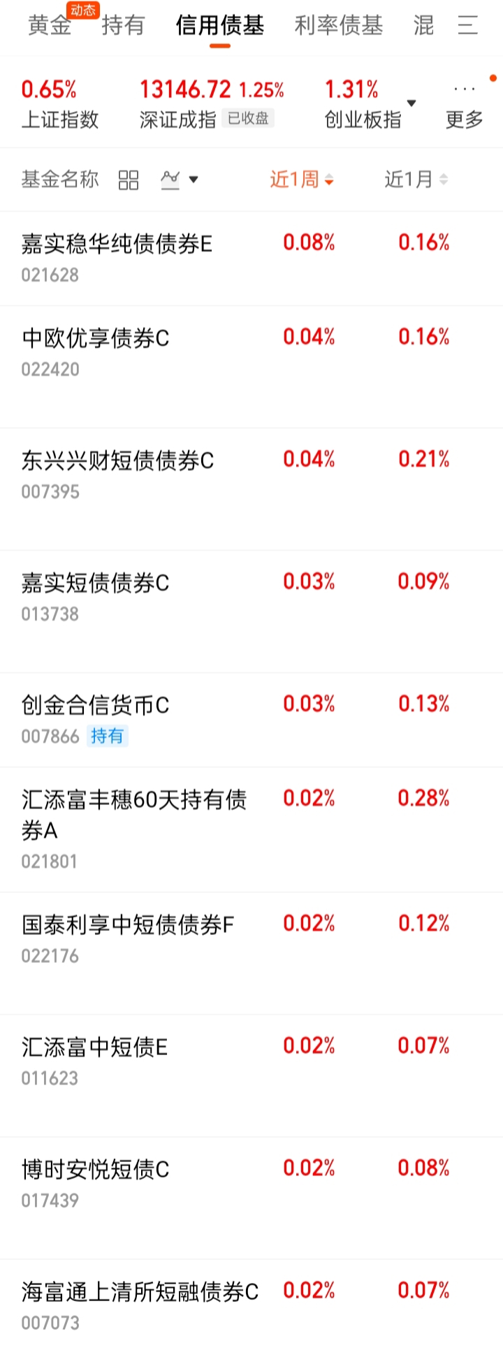 中短债基:-0.01%。低于货基。