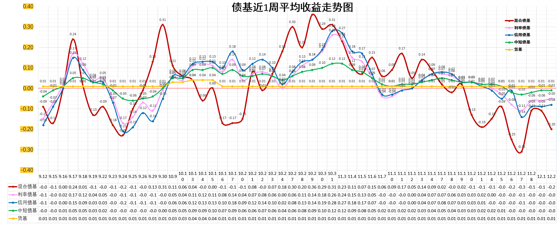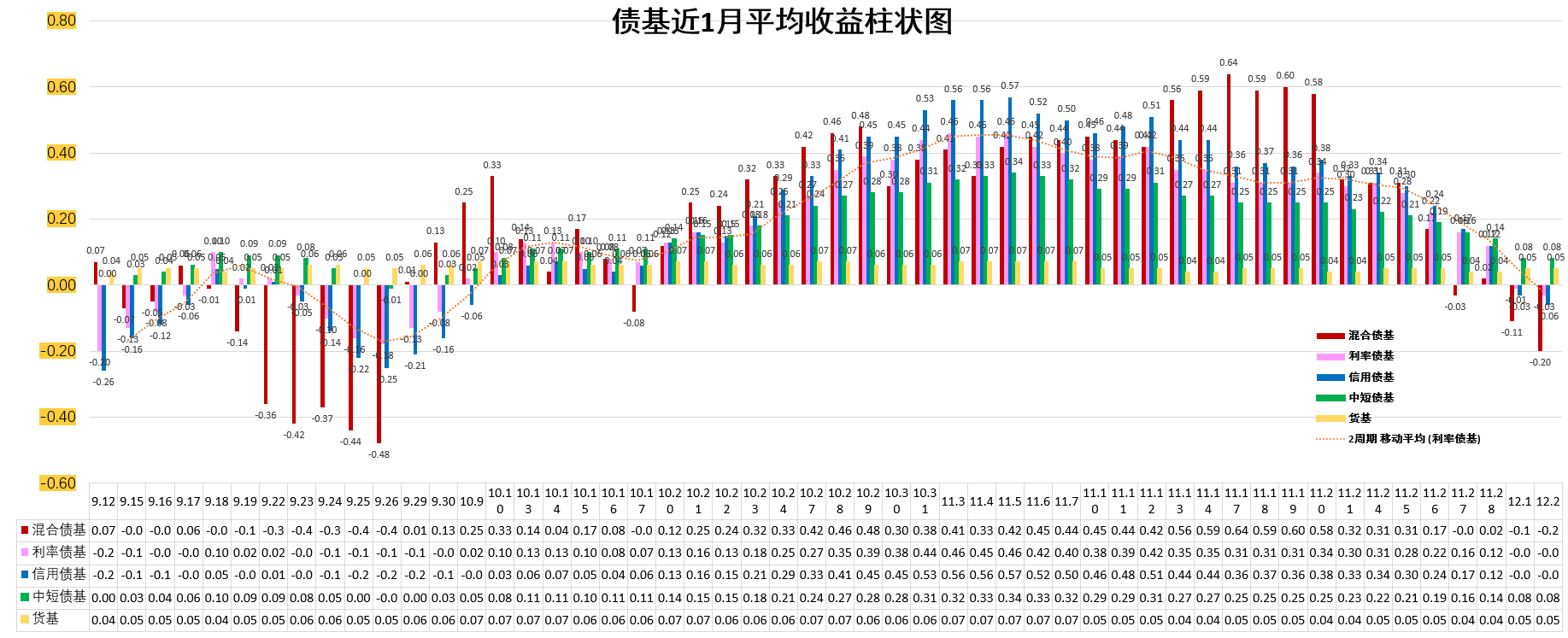 利率债基:-0.03%。低于货基。