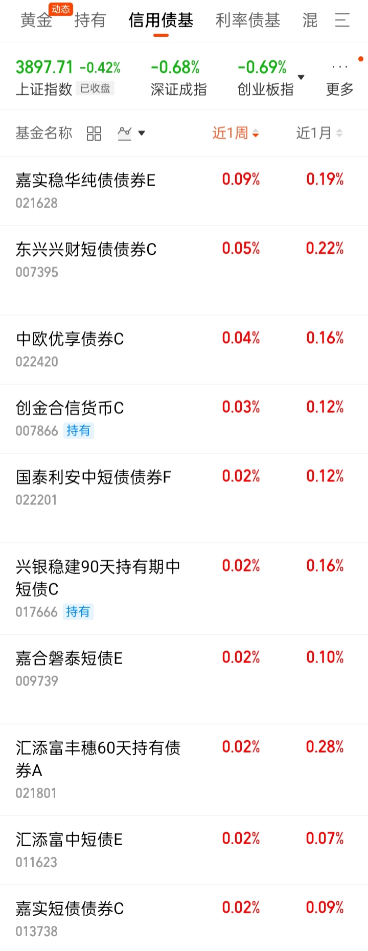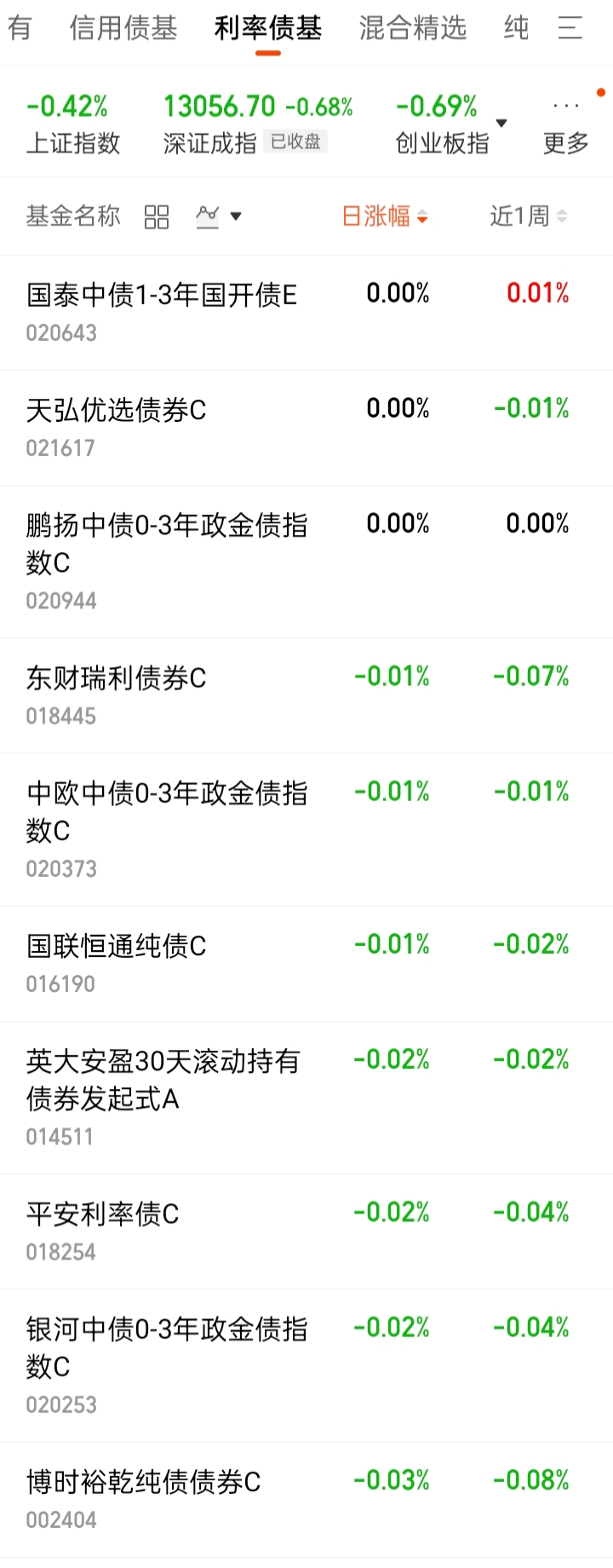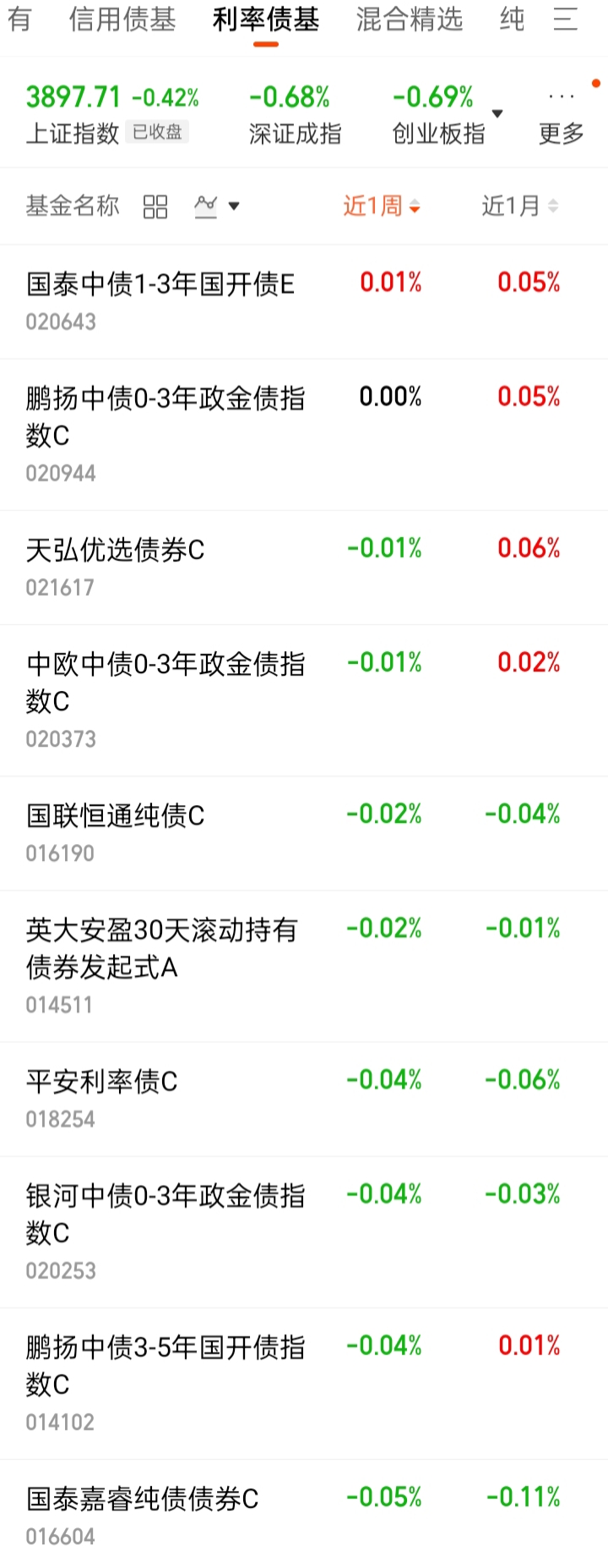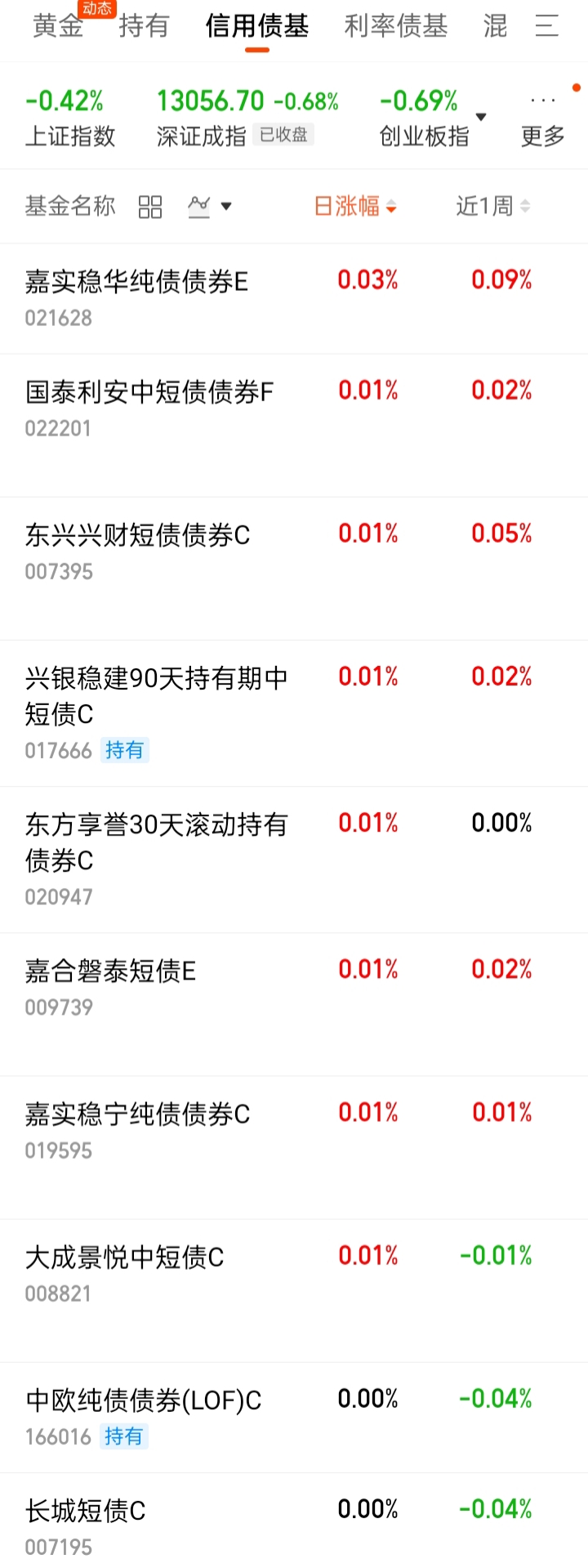 中短债基:-0.01%。低于货基。