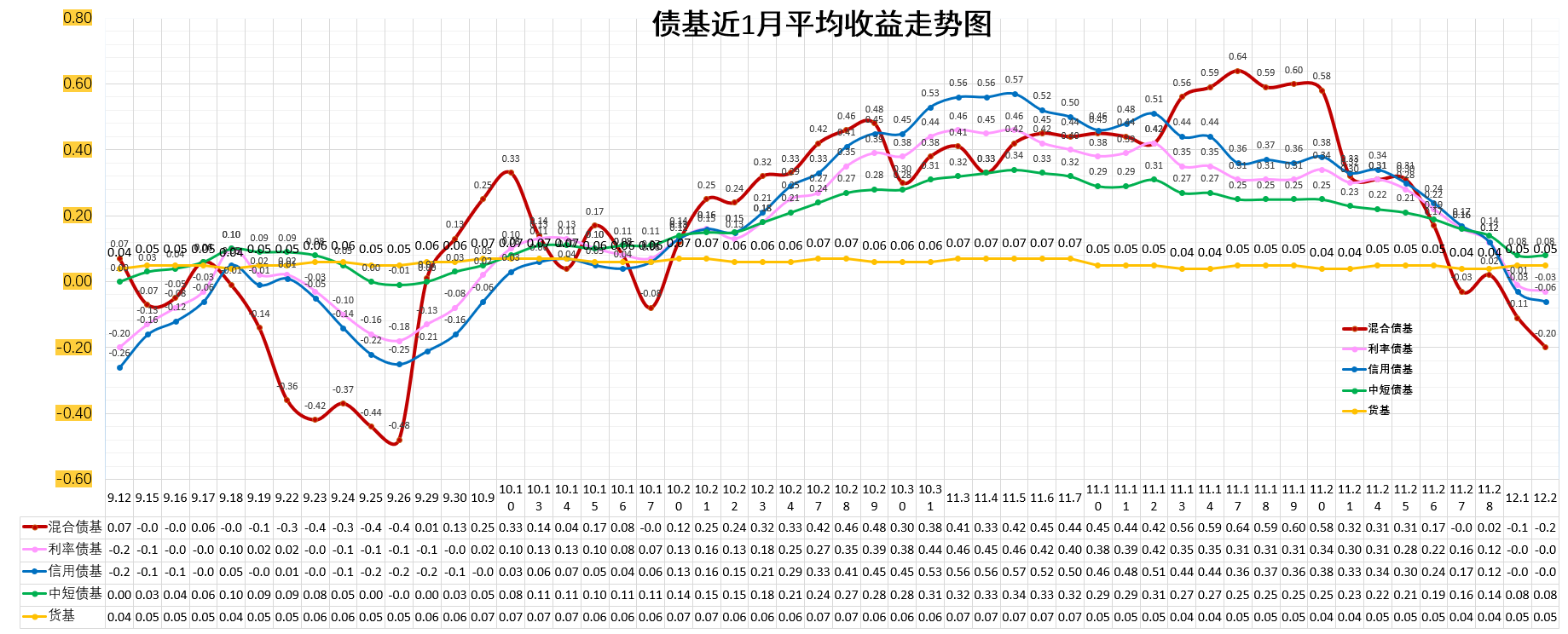 信用债基 :-0.06%。低于货基。