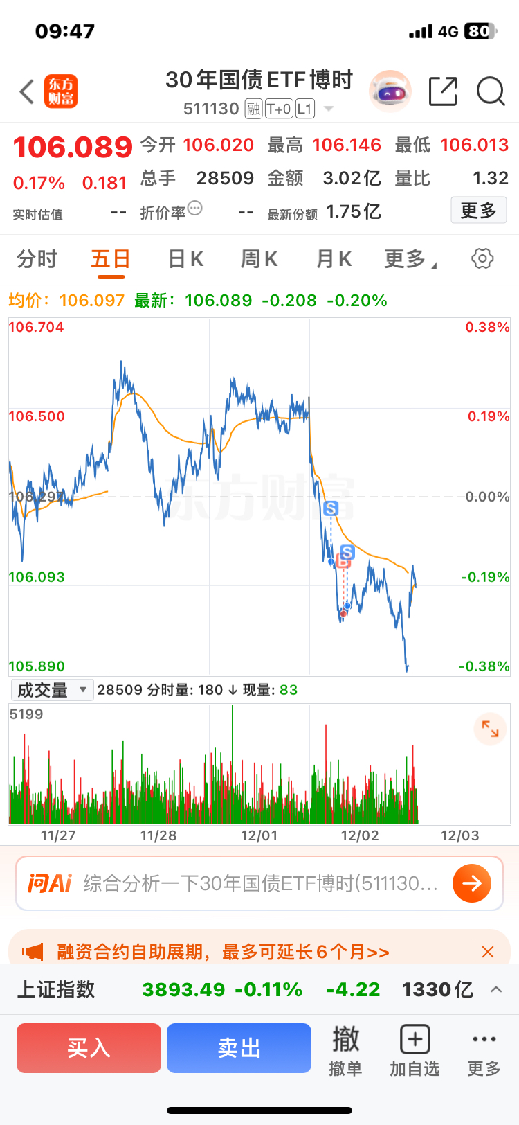 $30年国债ETF博时(SH511130)$ 卖掉就拉不跌了吗?
