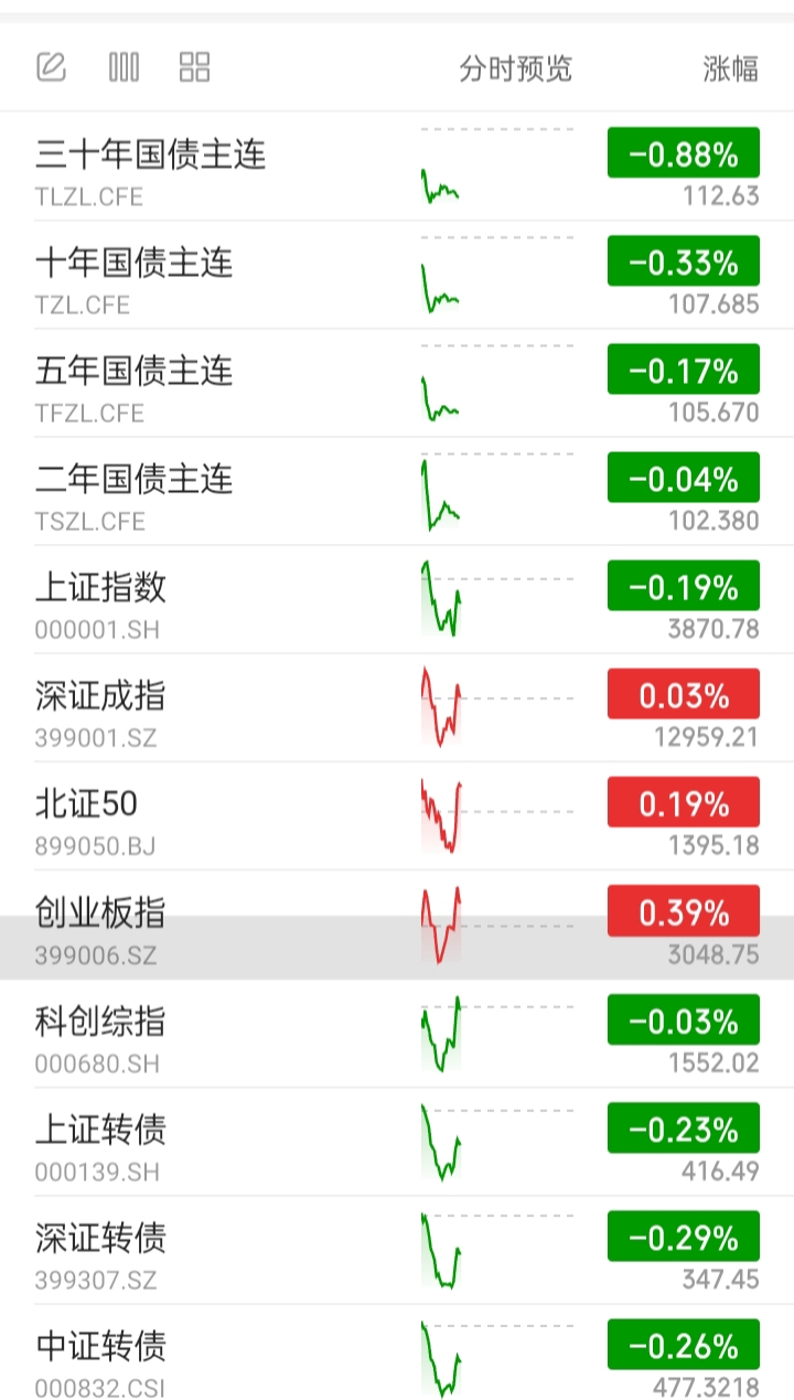 股市主要指数4涨1跌,目前看对债市没有影响。今天偏股混合债基可能收蛋或碎蛋。