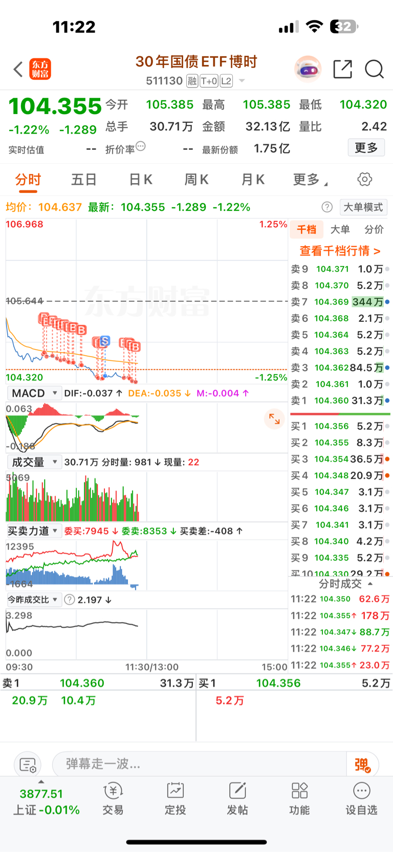 $30年国债ETF博时(SH511130)$ 这还搞个毛呀