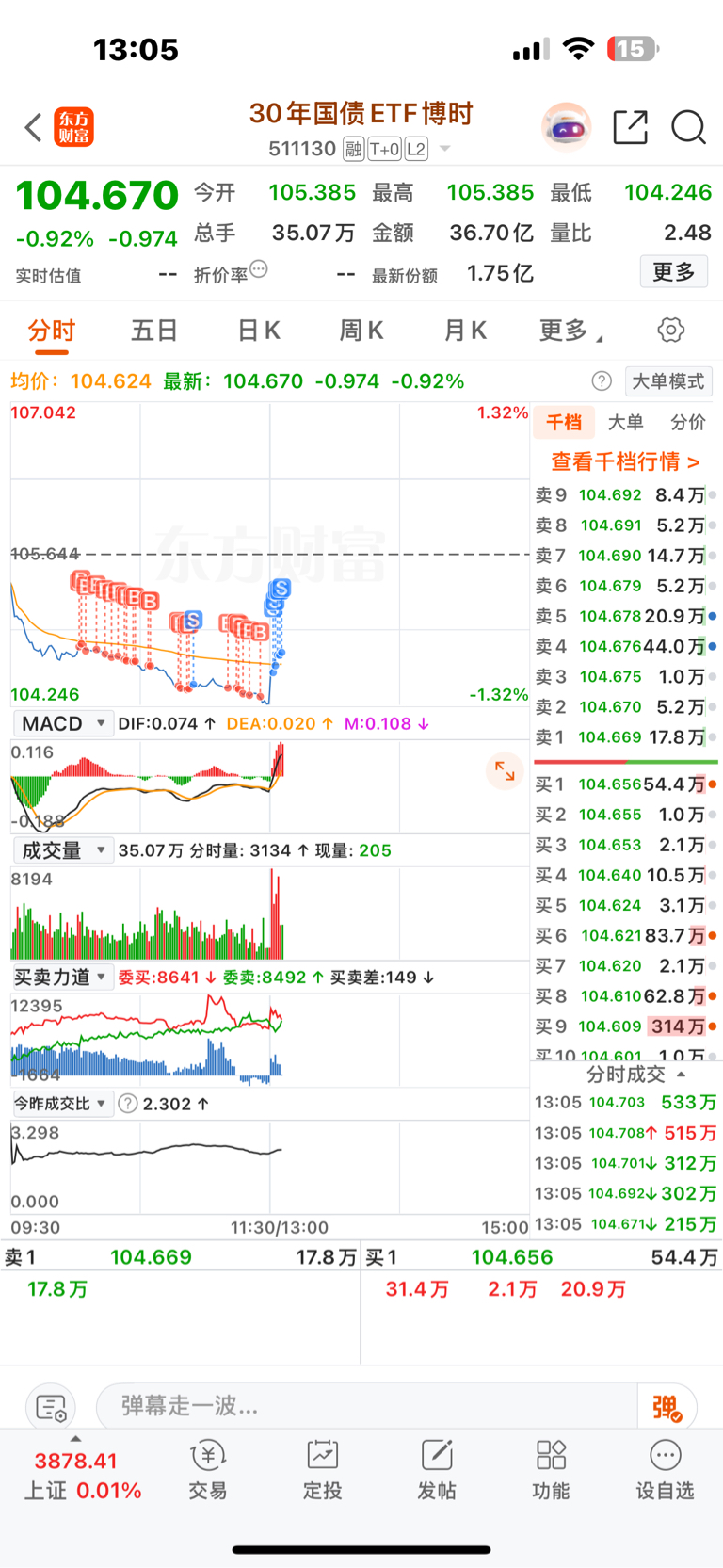 $30年国债ETF博时(SH511130)$ 此地不易久留,溜了溜了