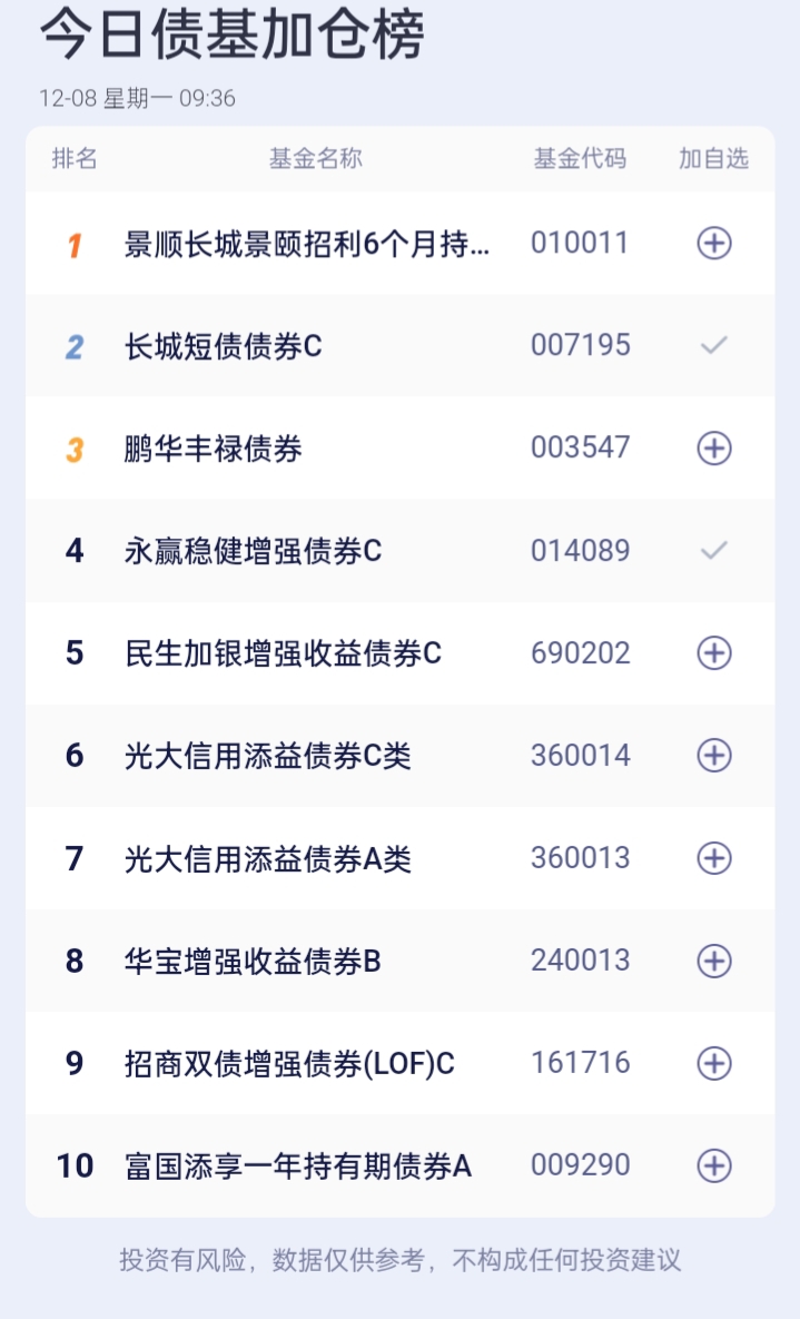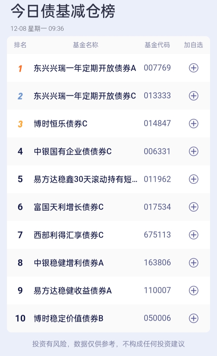 $华泰保兴安悦债券C(OTCFUND|020741)$。$南方中债7-10年国开行债券指数A(OTCFUND|006961)$。$永赢稳健增强债券C(OTCFUND|014089)$。$富国优化增强债券E(OTCFUND|018980)$。$易方达增强回报债券A(OTCFUND|110017)$。$方正富邦鸿远债券C(OTCFUND|015909)$。$东方添益债券(OTCFUND|400030)$。$华泰保兴安悦债券A(OTCFUND|007540)$。$长城短债C(OTCFUND|007195)$。$南方中债7-10年国开行债券指数E(OTCFUND|013594)$