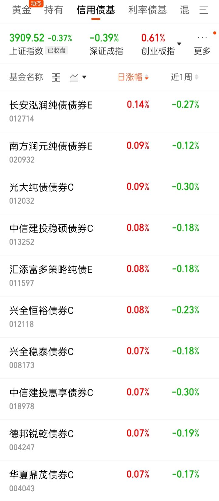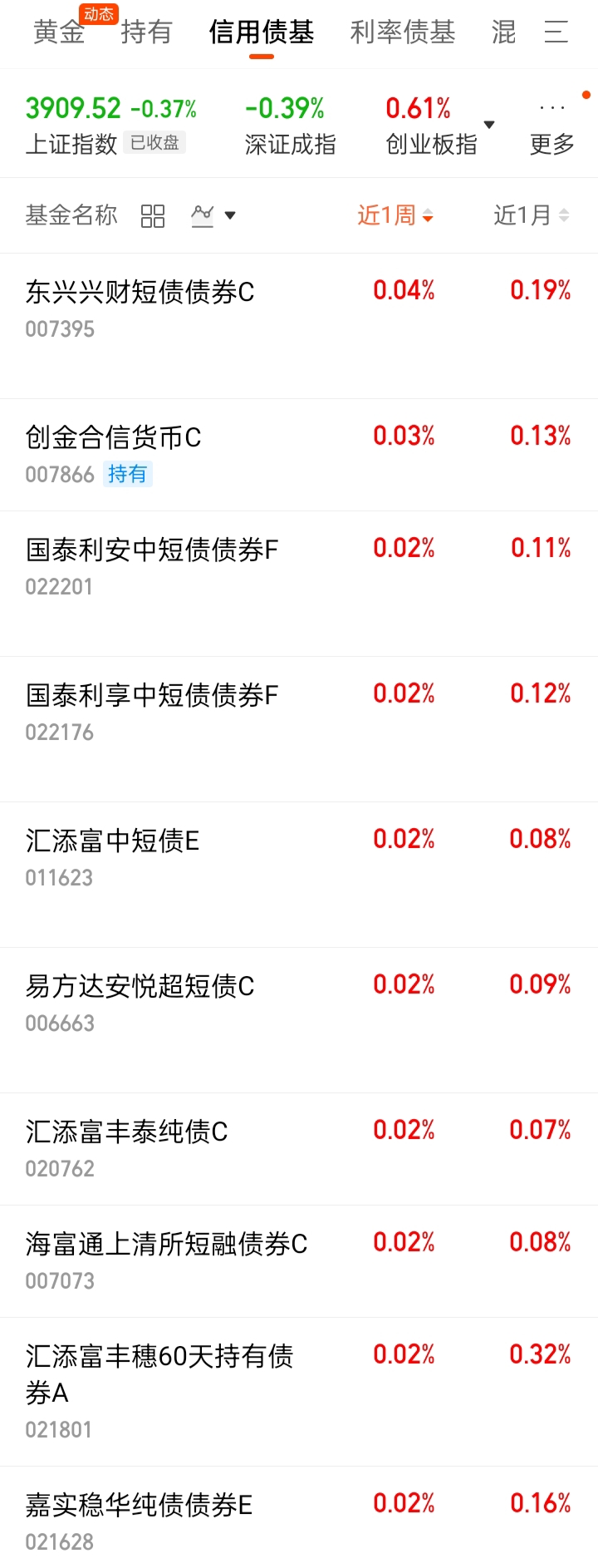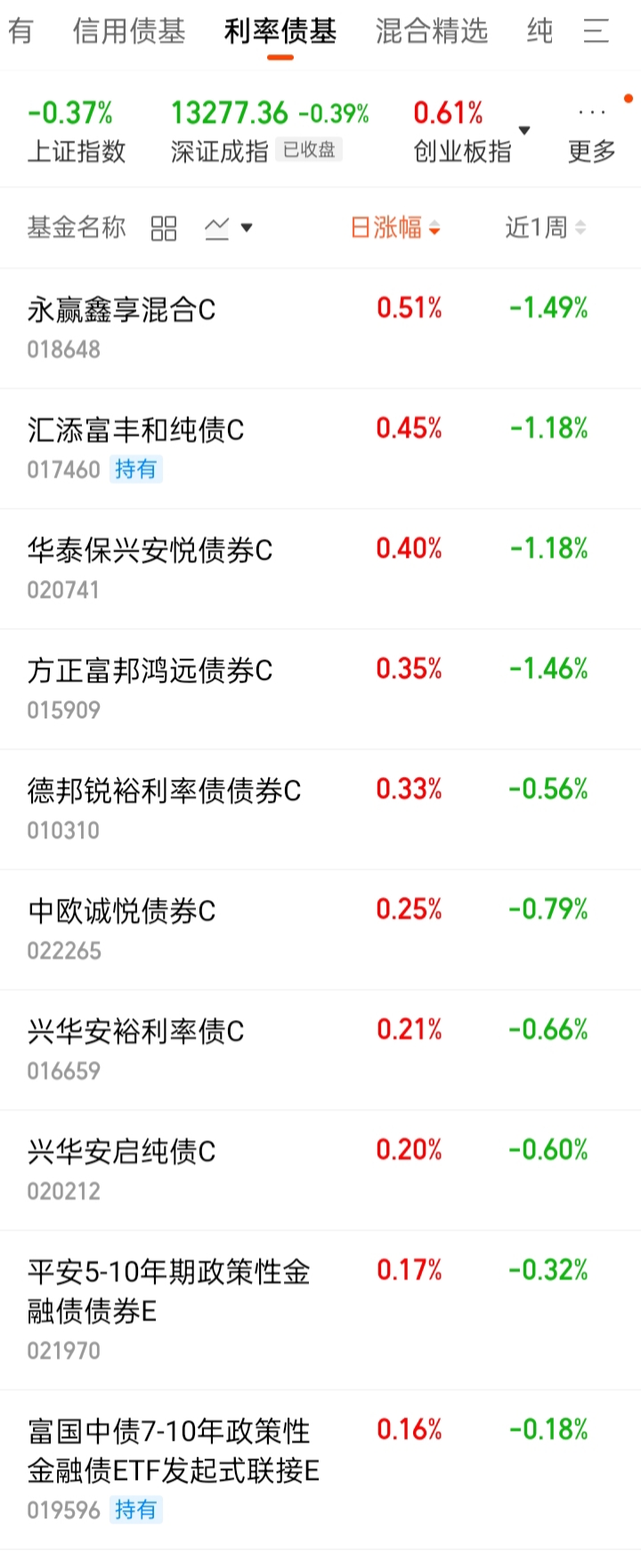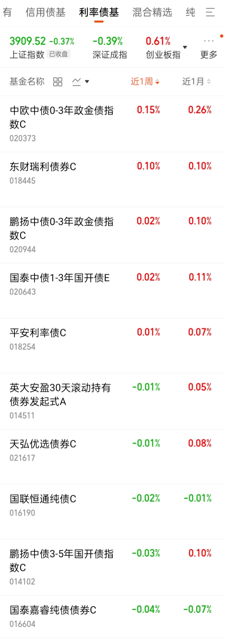 $华泰保兴安悦债券C(OTCFUND|020741)$。$东方添益债券(OTCFUND|400030)$。$鹏华丰禄债券(OTCFUND|003547)$。$方正富邦鸿远债券C(OTCFUND|015909)$。$永赢稳健增强债券C(OTCFUND|014089)$。$博时恒乐债券C(OTCFUND|014847)$。$长城短债C(OTCFUND|007195)$。$鹏华碳中和主题混合C(OTCFUND|016531)$。$永赢科技智选混合发起C(OTCFUND|022365)$。$华夏国证半导体芯片ETF联接C(OTCFUND|008888)$