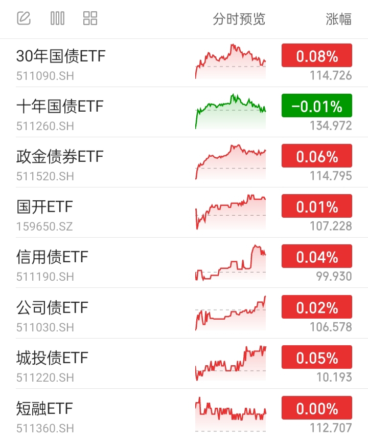 信用债ETF、公司债ETF、城投债ETF,代表信用债基。全部上涨