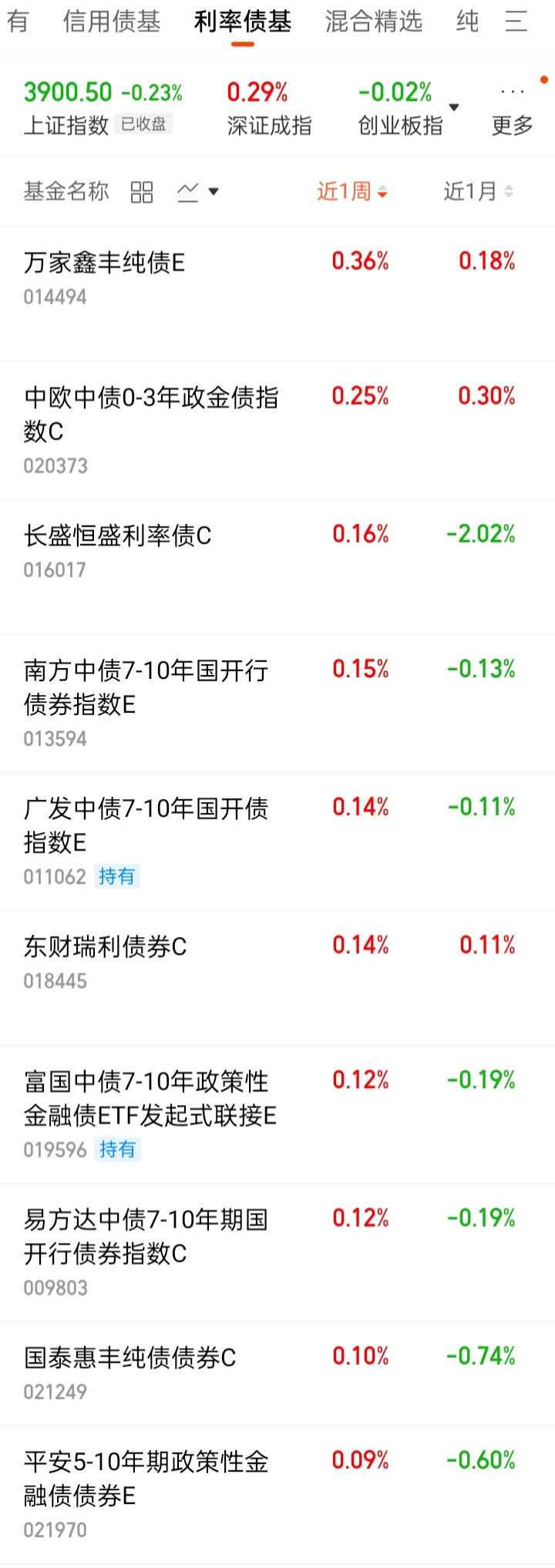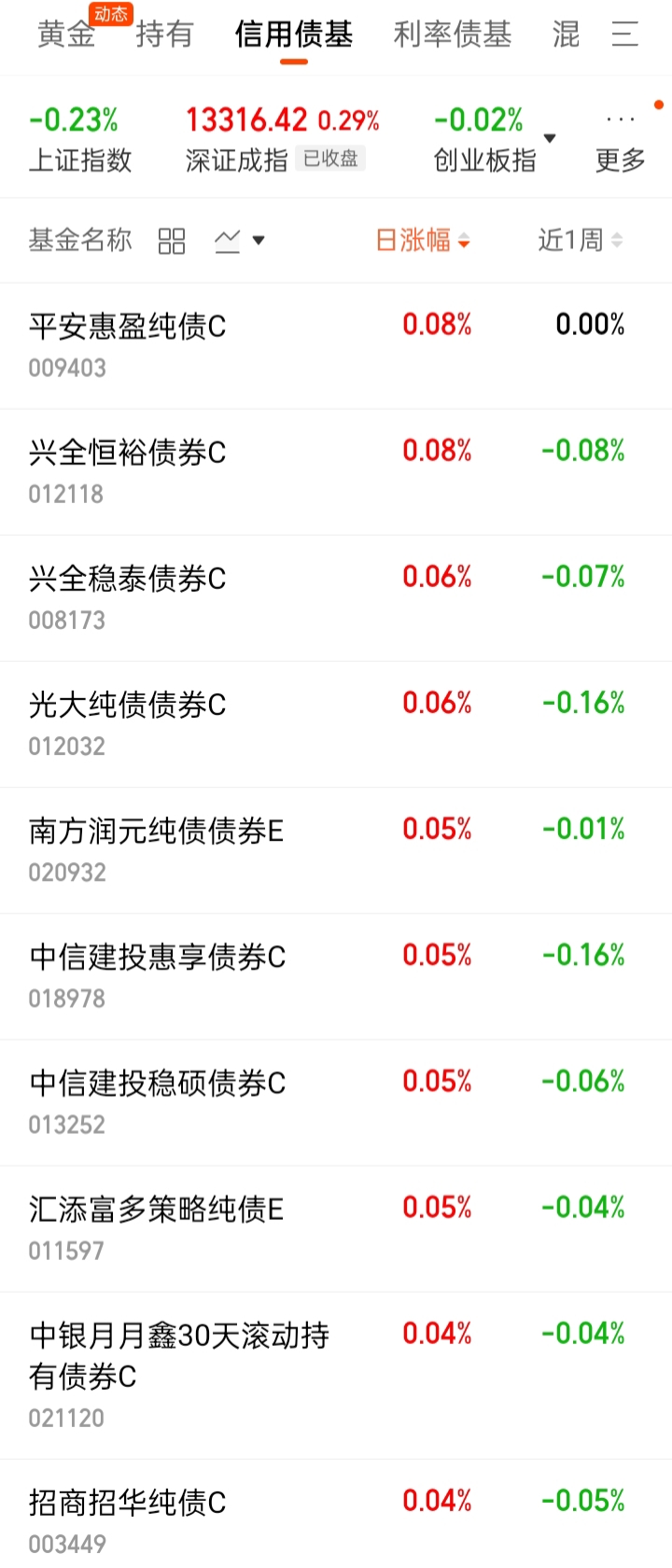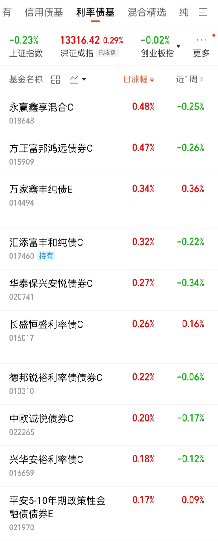 $华泰保兴安悦债券C(OTCFUND|020741)$。$东方添益债券(OTCFUND|400030)$。$华泰保兴安悦债券A(OTCFUND|007540)$ 。$鹏华丰禄债券(OTCFUND|003547)$。$方正富邦鸿远债券C(OTCFUND|015909)$。$永赢稳健增强债券C(OTCFUND|014089)$。$国泰惠丰纯债债券A(OTCFUND|007214)$。$博时恒乐债券C(OTCFUND|014847)$。$易方达增强回报债券A(OTCFUND|110017)$。$南方中债7-10年国开行债券指数E(OTCFUND|013594)$