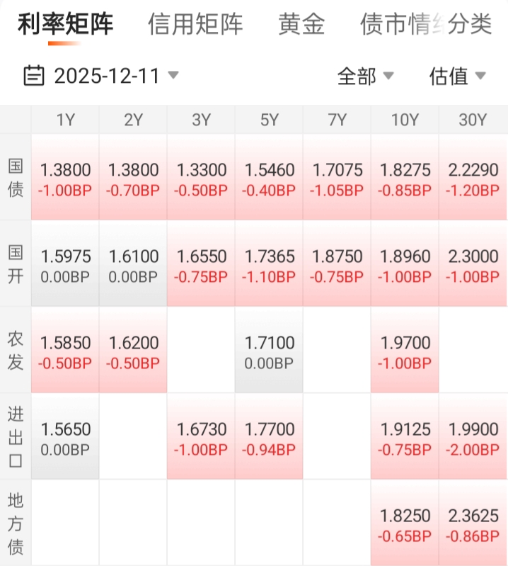 今天债市上涨。