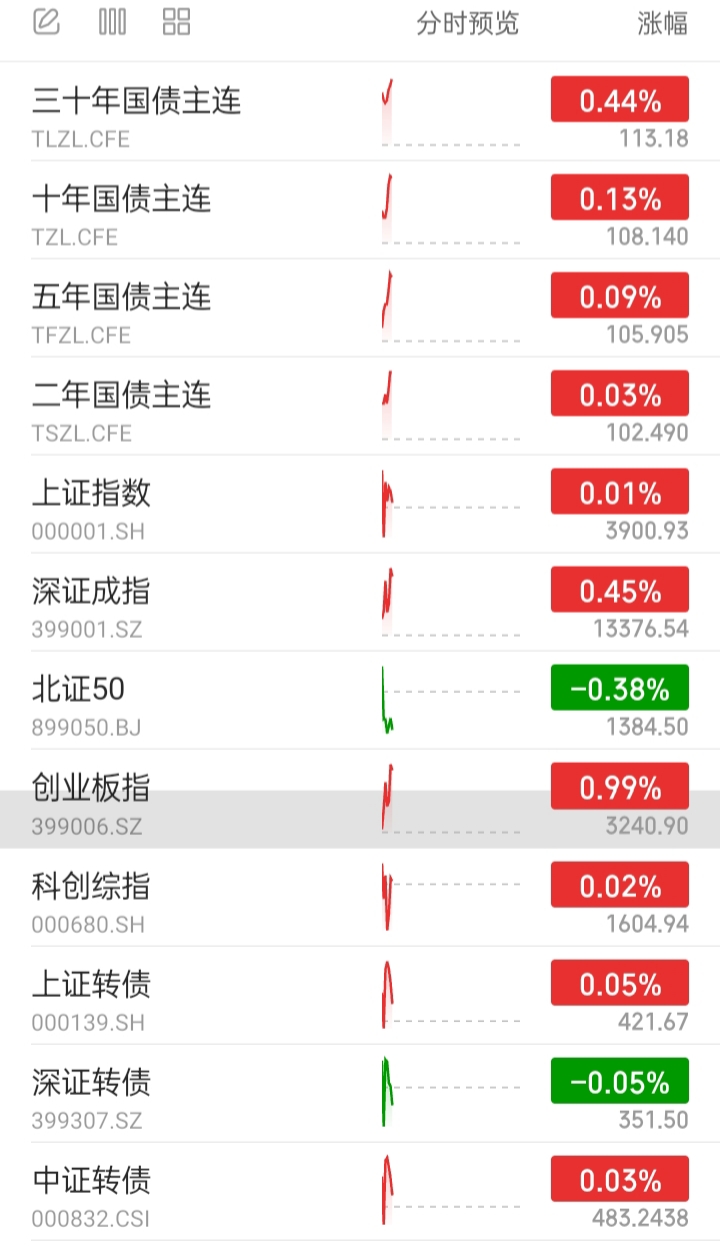 目前国债期货全部上涨,表现较好。