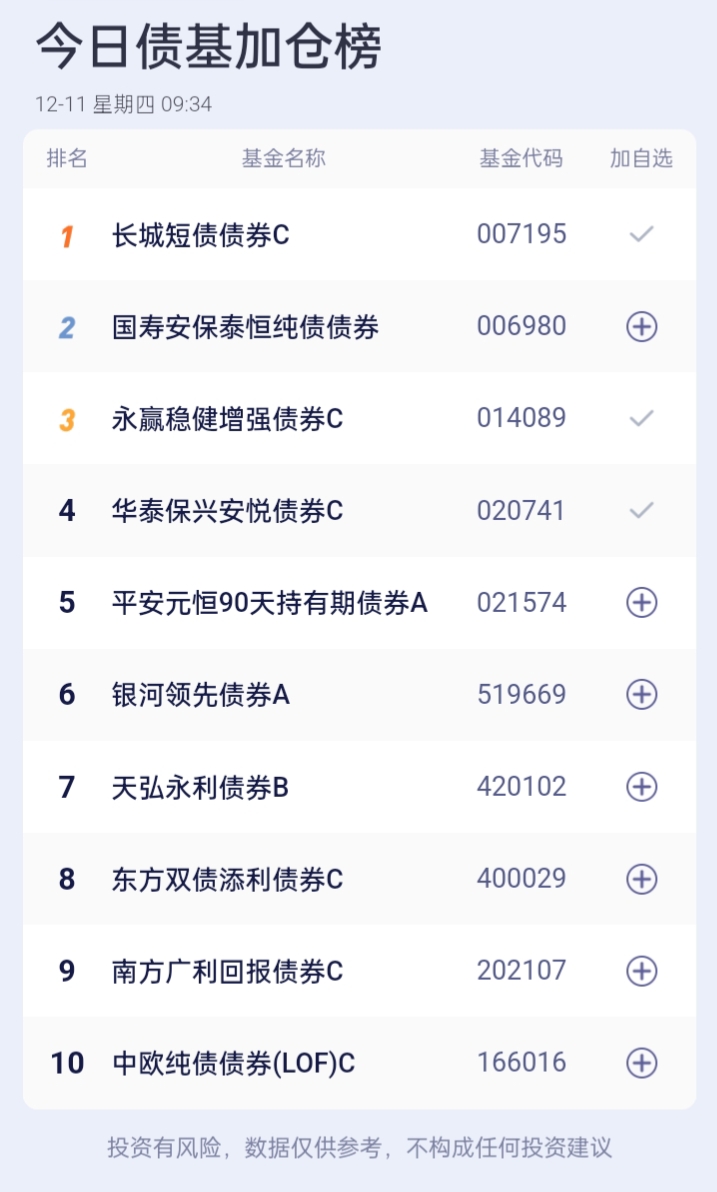 债基加减仓榜