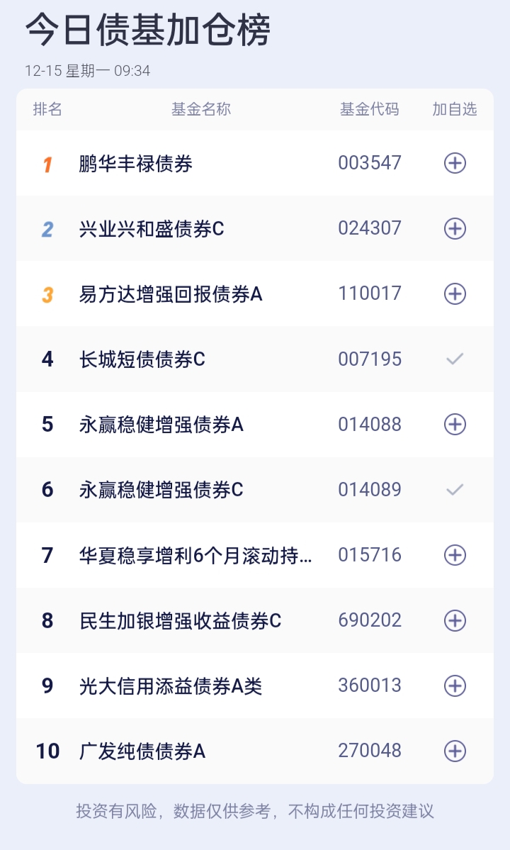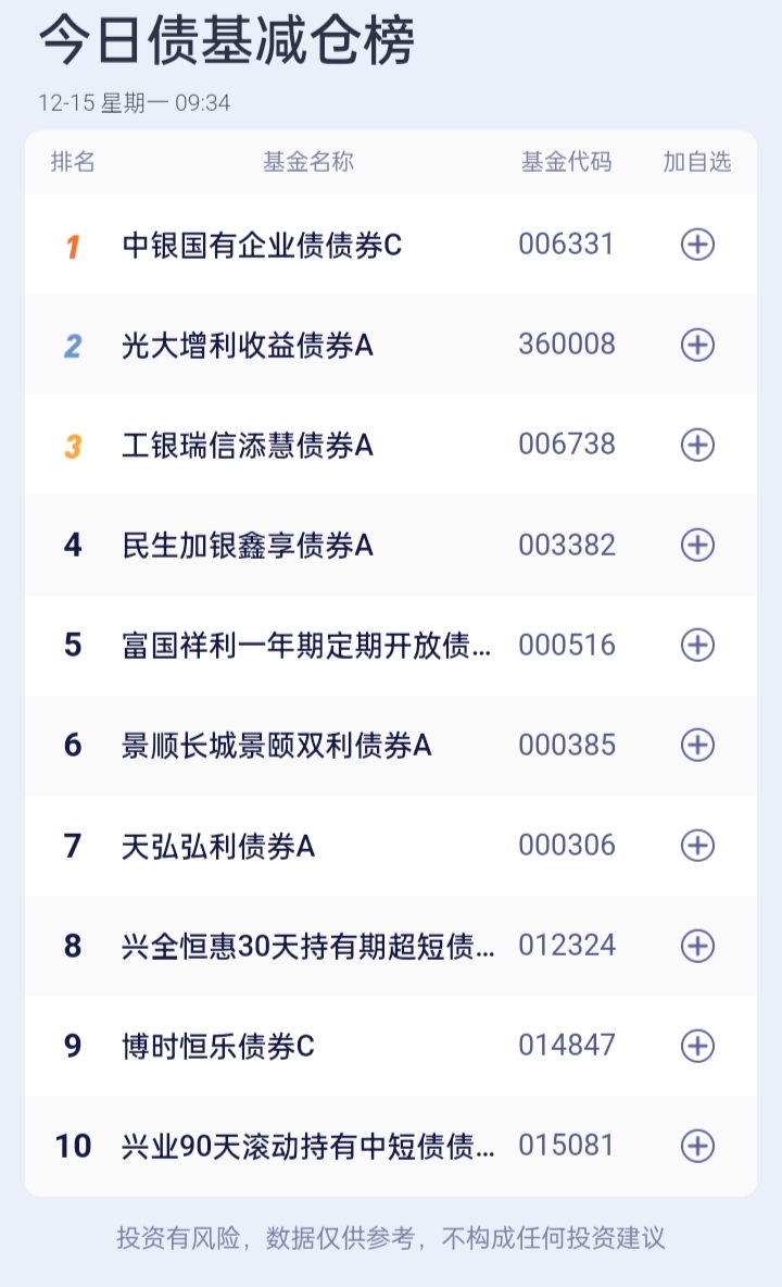 债基加减仓榜