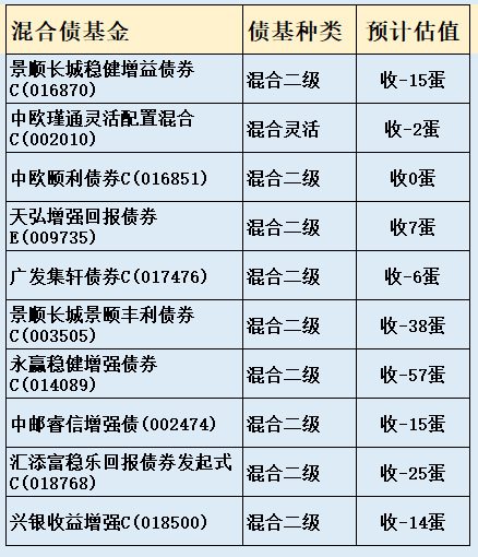 3、部分热门债基收蛋预估