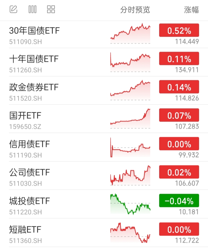30年国债ETF,代表超长端利率债基。上涨