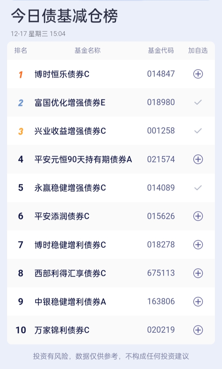 八、债券基金加、减仓榜(截止到15:00收盘)