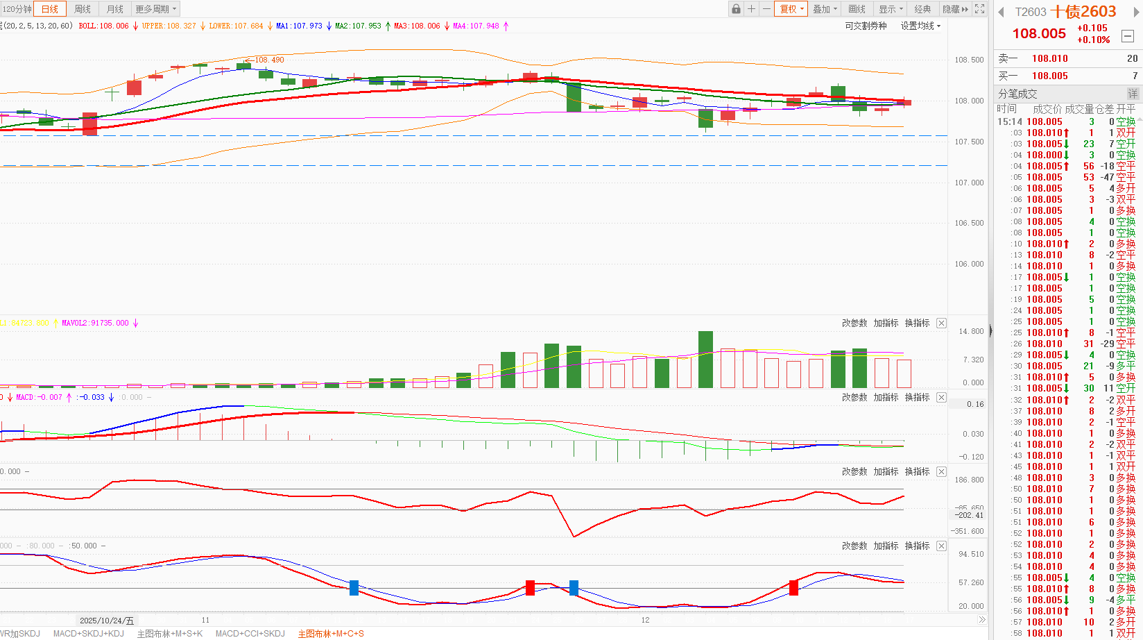 今天10年国债期货高开高走,涨0.10%,日K线在5日均线之上。