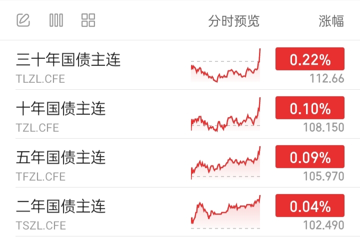 国债期货全部上涨。