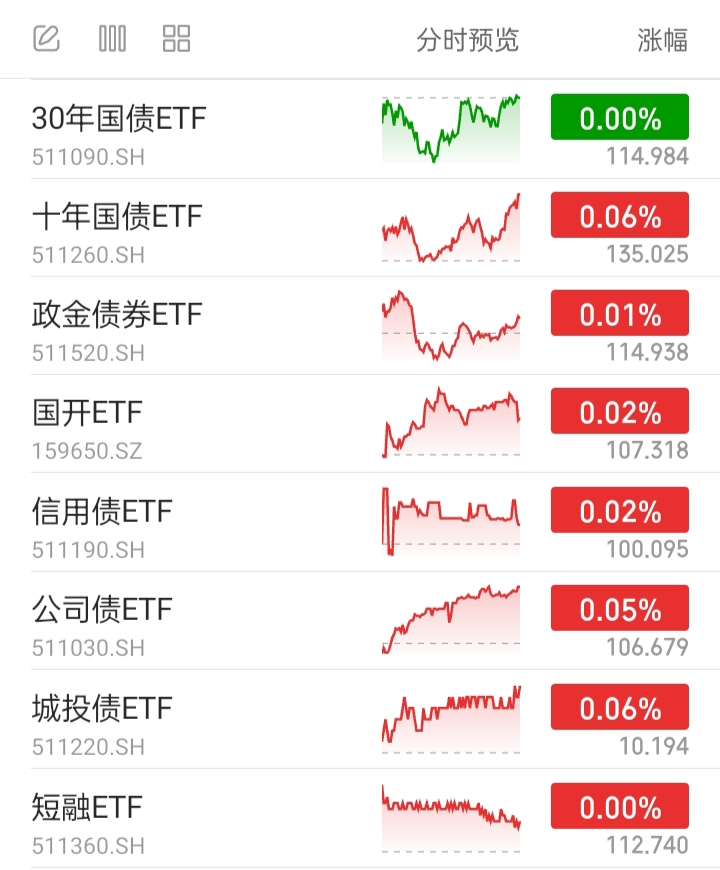 信用债ETF、公司债ETF、城投债ETF,代表信用债基。全部上涨