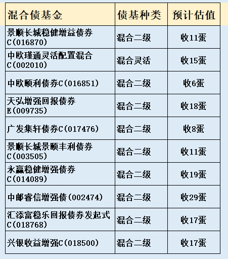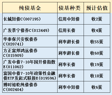 3、部分热门债基收蛋预估