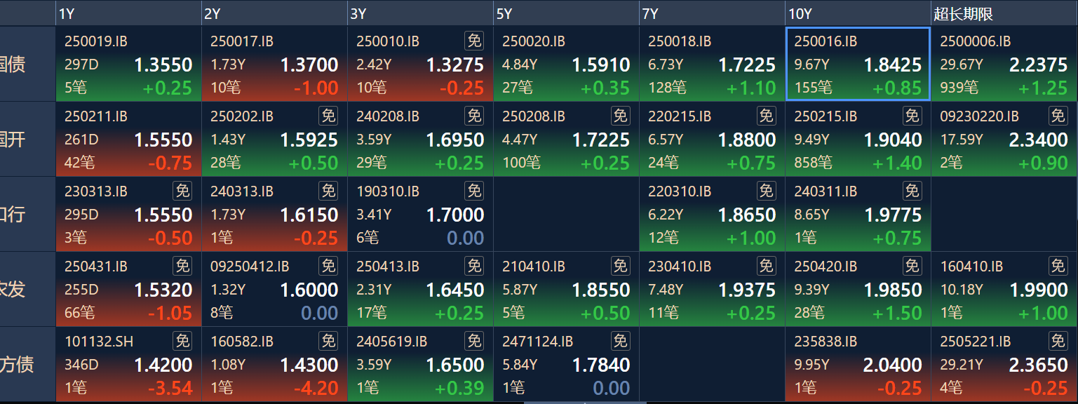二、十年期国债收益率:1.8425 0.0085%(国债收益率越涨,债市越跌,两者反向关系)