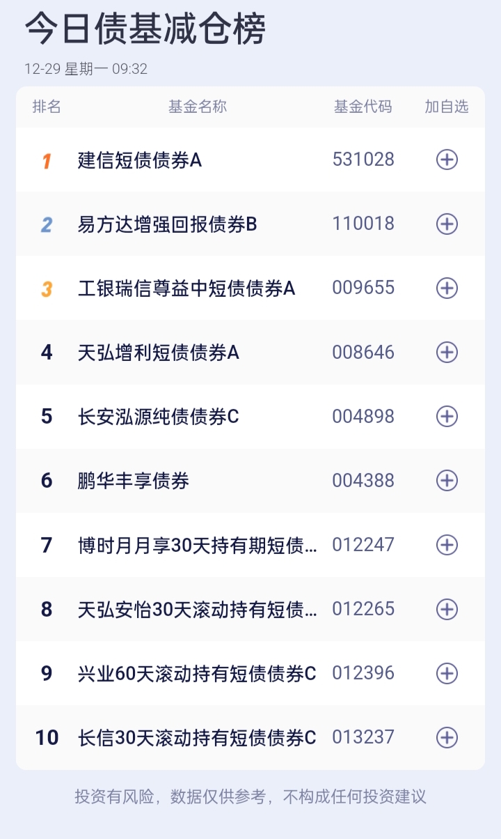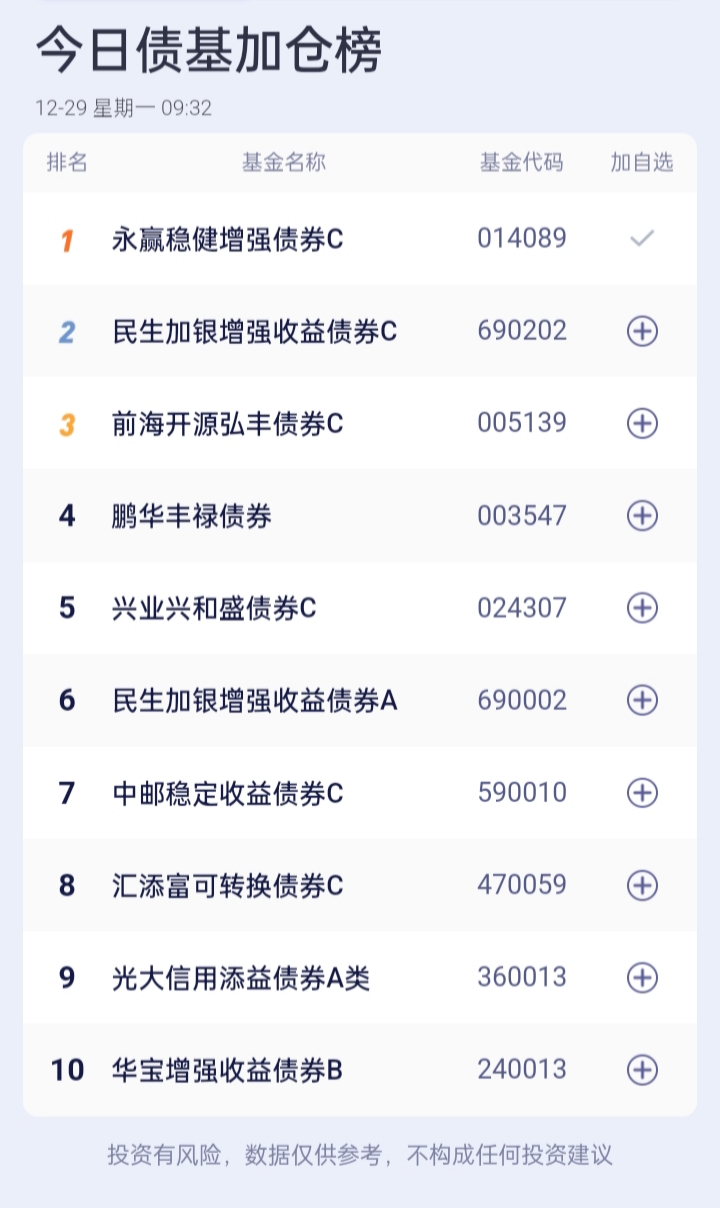 $华泰保兴安悦债券C(OTCFUND|020741)$。$永赢稳健增强债券C(OTCFUND|014089)$。$易方达增强回报债券A(OTCFUND|110017)$。$方正富邦鸿远债券C(OTCFUND|015909)$。$东方添益债券(OTCFUND|400030)$。$华泰保兴安悦债券A(OTCFUND|007540)$。$长城短债C(OTCFUND|007195)$。$博时恒乐债券C(OTCFUND|014847)$。$广发中债7-10年国开债指数E(OTCFUND|011062)$。$鹏华丰禄债券(OTCFUND|003547)$