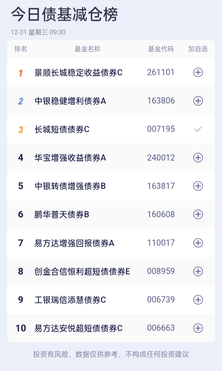 债基加减仓榜