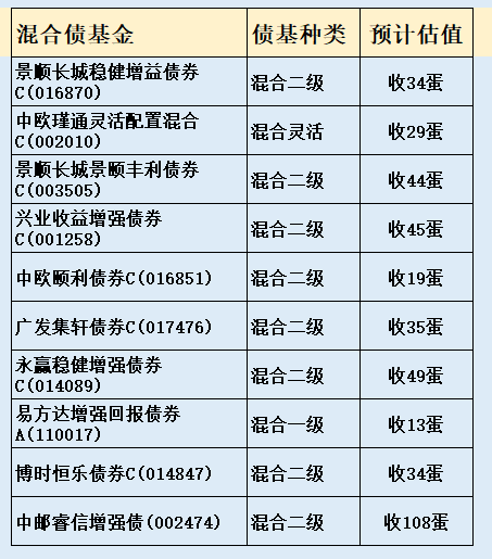 3、部分热门债基收蛋预估