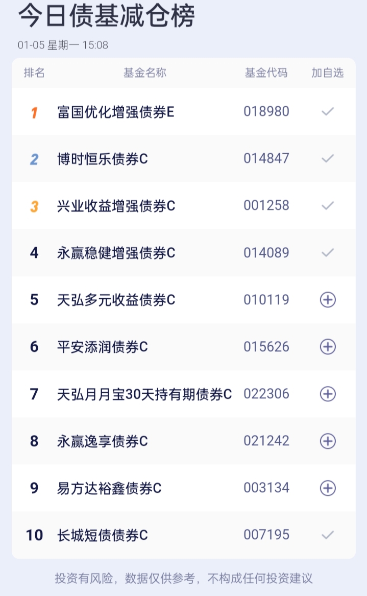 八、债券基金加、减仓榜(截止到15:00收盘)