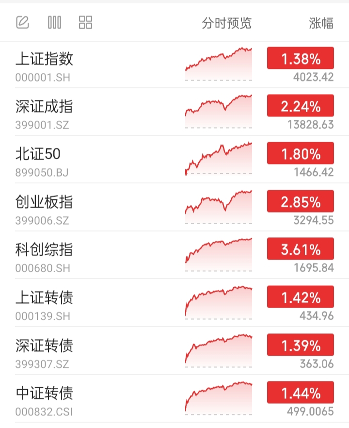 A股市场重要指数:全部上涨。今天偏股混基可能上涨。