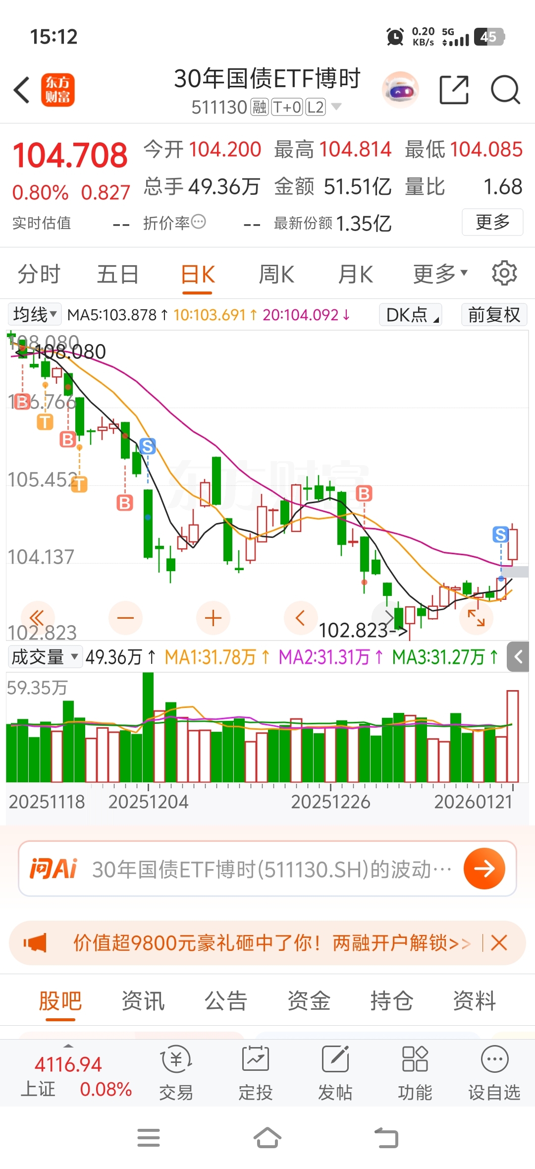 $30年国债ETF博时(SH511130)$ 真是昨天尾盘卖了坚持这么久亏钱卖了