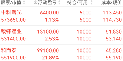 中科曙光:昨天整体冲高回落,午后出现一定反弹,但最终未能翻红,整体呈现出高开低走,但是K线还是站稳在了5日线上方,所以尾盘的时候拿了一部分,短期的话今天站稳5日线上就拿,如果破5日就撤,中长线没有问题可以继续格居。