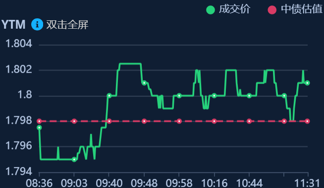 二、十年期国债收益率:1.801 0.003%(国债收益率越涨,债市越跌,两者反向关系)