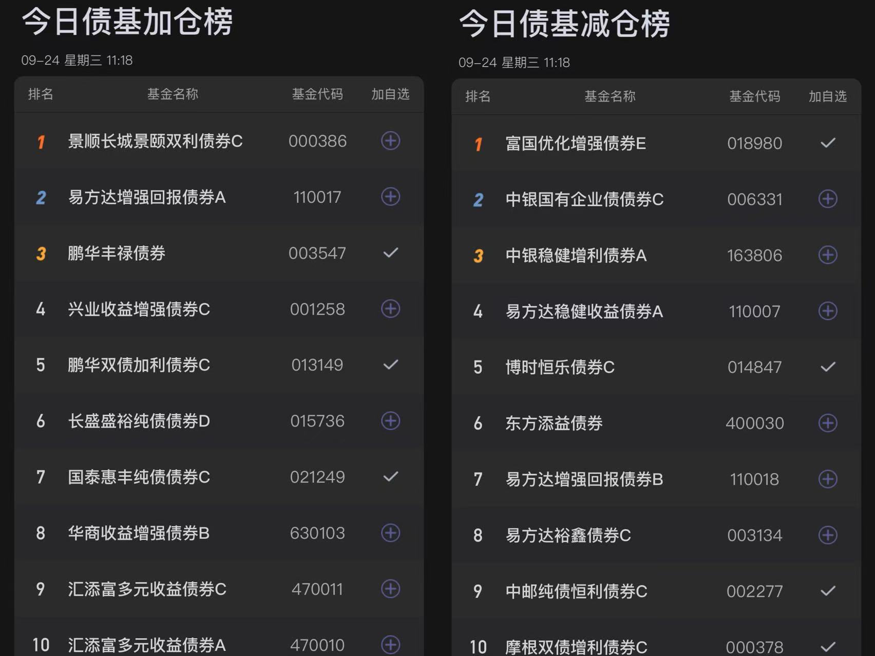 $中邮稳定收益债券A(OTCFUND|590009)$$博时稳健增利债券C(OTCFUND|018278)$$银华增强收益债券A(OTCFUND|180015)$$易方达稳健收益债券A(OTCFUND|110007)$$天弘永利债券B(OTCFUND|420102)$$博时恒乐债券A(OTCFUND|014846)$$永赢稳健增强债券C(OTCFUND|014089)$$东财瑞利债券C(OTCFUND|018445)$$国泰惠丰纯债债券C(OTCFUND|021249)$$上银中债5-10年国开行债券指数A(OTCFUND|013138)$#“924行情”一周年 你赚了多少?#