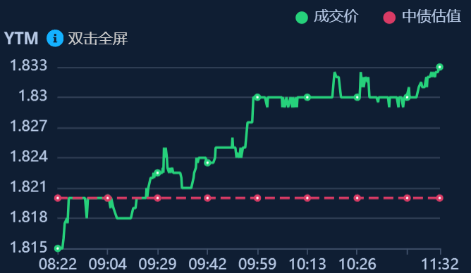 二、十年期国债收益率:1.833 0.013%(国债收益率越涨,债市越跌,两者反向关系)