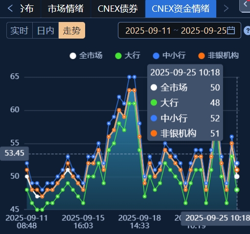 DR001报1.47%左右,DR007报1.57%左右,资金情绪均衡(CNEX资金面情绪指数在50)
