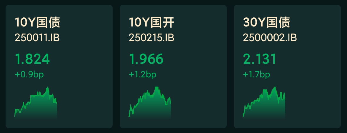 十年期国债收益率:1.824%,+0.9BP(国债收益率越跌,债市越涨)