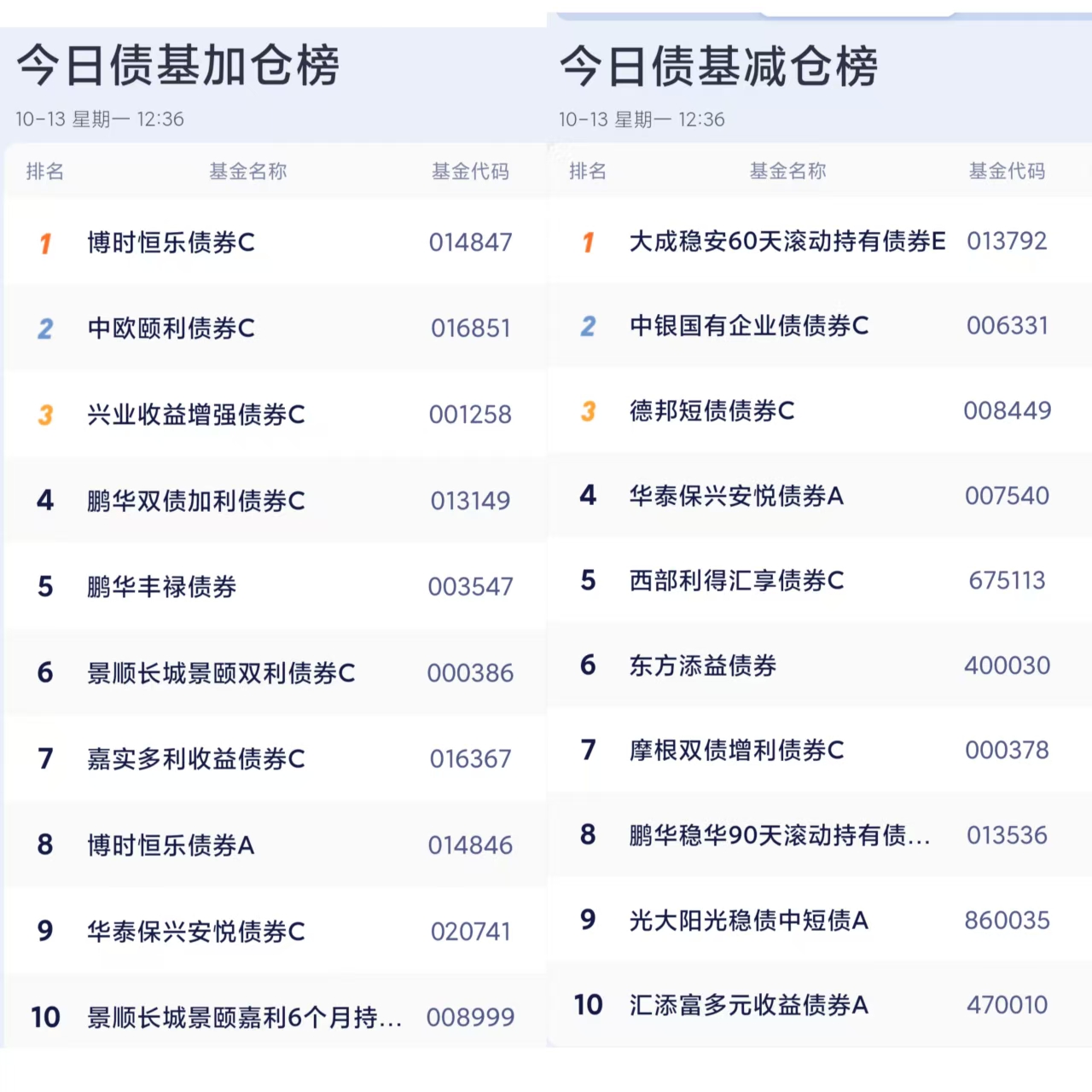 六、债券基金加减仓榜单