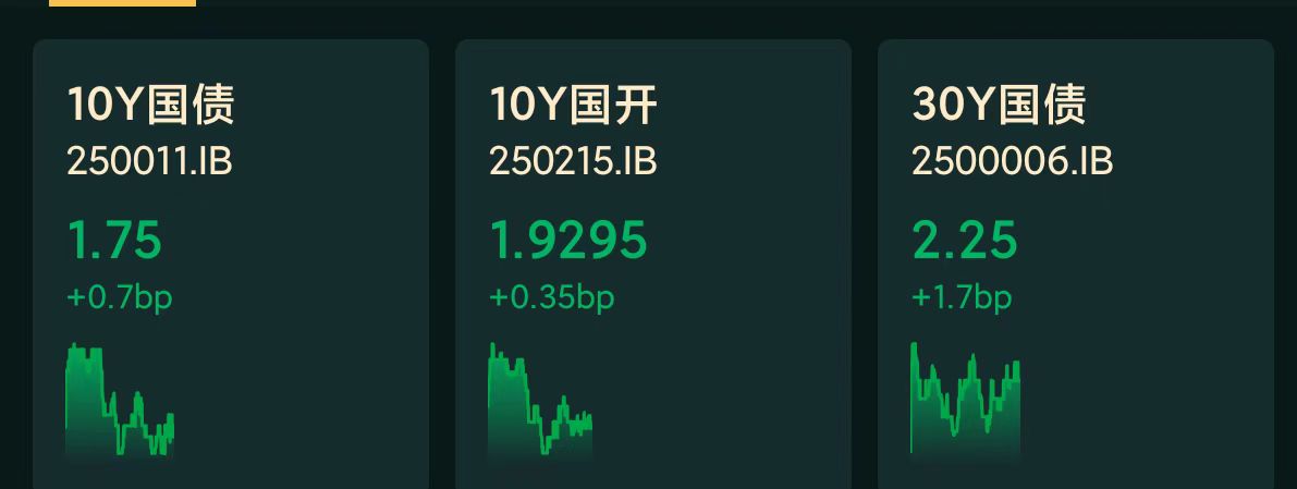 十年期国债收益率:1.75%,+0.7BP(国债收益率越跌,债市越涨)
